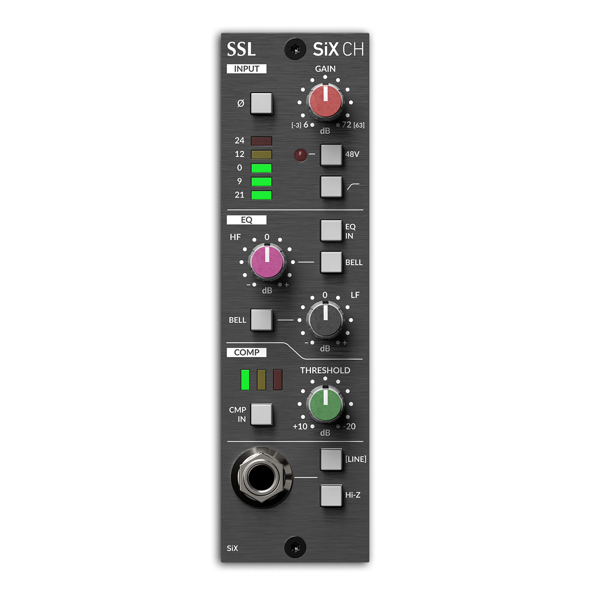 Шестиканальный стрип (SiX CH) - это одноканальный стрип серии 500, использующий функции обработки каналов SuperAnalogueTM на консоли SSL SiX, включая микрофонную установку, эквалайзер низких и высоких частот, а также компрессор с одной ручкой.