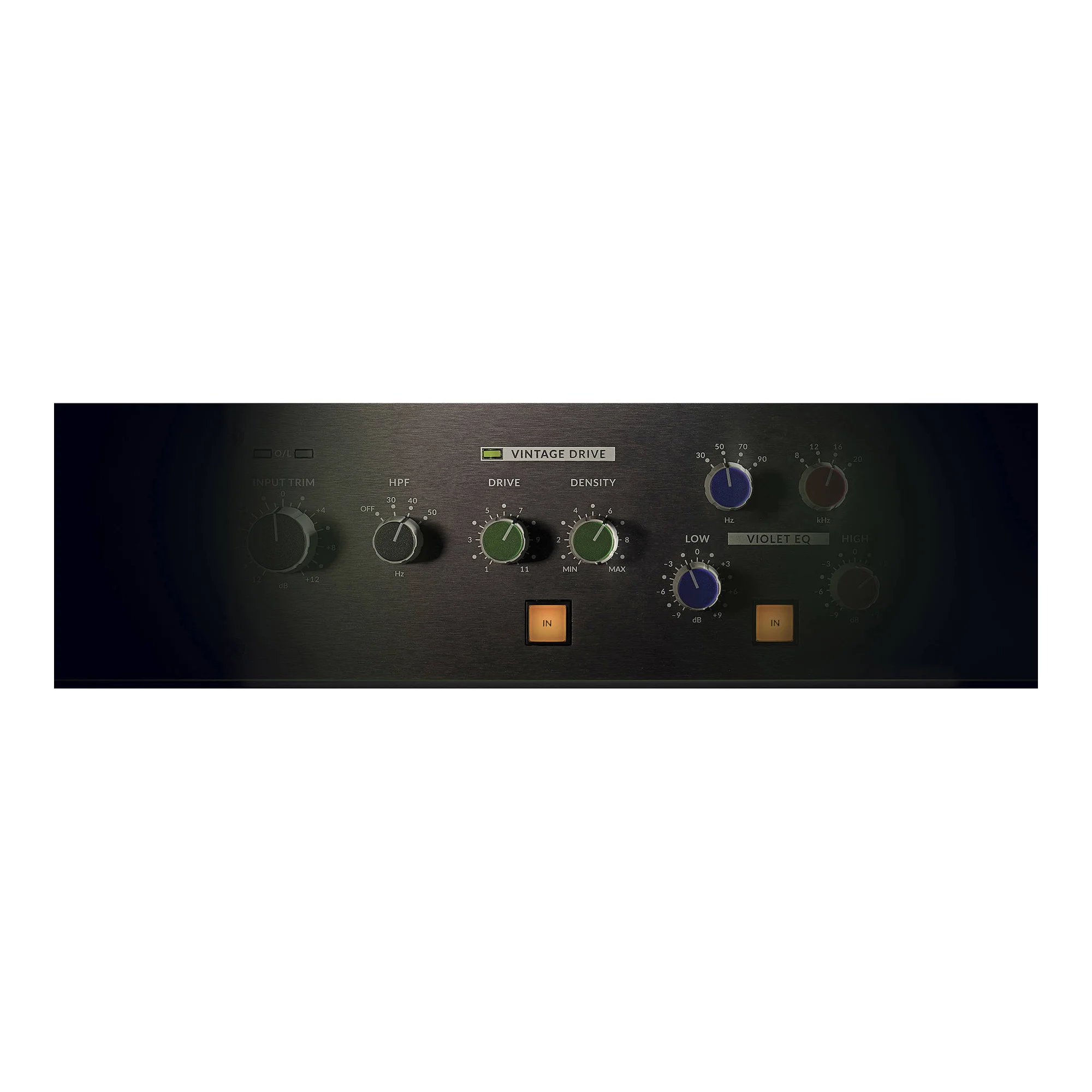 Двухполосный эквалайзер Violet EQ с минимальным фазовым сдвигом. Он использует наследие SSL в виде тщательно подобранных частот и кривых отклика для создания музыкального и интуитивно понятного эквалайзера, предназначенного для быстрого набора низких частот и высококачественного звучания. Каждый высокочастотный и низкочастотный контуры имеют по четыре переключаемые частоты и коэффициент усиления ±9 дБ.