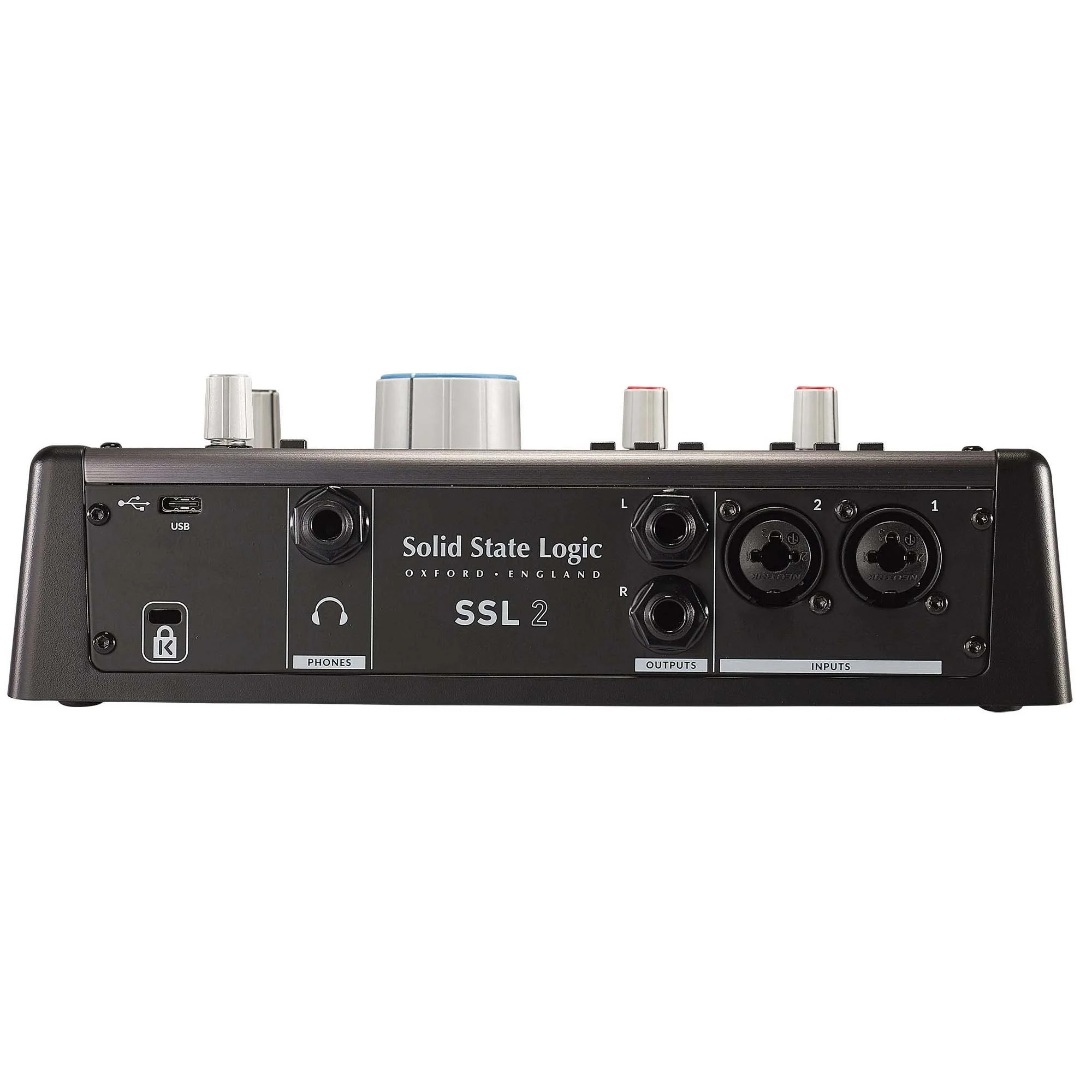 Коммутационные возможности модели представлены выходом для наушников, 2 XLR/TRS входами, 2 TRS L/R выходами и портом USB-C. Питание осуществляется по USB. Интерфейс отличается надежной сборкой, прочным корпусом и качественными комплектующими — от разъемов Neutrik до потенциометров Alps. В комплект входит ПО от Avid, Ableton и Native Instruments и 1.5 Гб семплов от Loopcloud. Помимо стороннего софта, SSL дарит пользователям собственные виртуальные инструменты обработки Native channel strip: Vocalstrip 2 и Drumstrip.