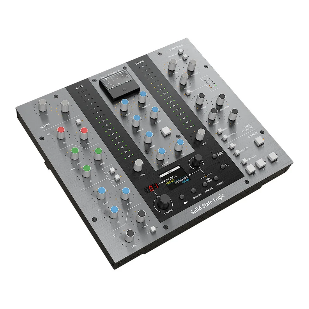 Контроллер оборудован выделенной регулятором для настройки канального эквалайзера и динамикой, центральной секцией с компонентами управления компрессором шины и оригинальным стрелочным измерителем усиления, которые предлагают уникальный, интуитивно понятный и действенный способ управления плагинами канальной полосы SSL Native Channel Strip 2 и Bus Compressor 2 в вашей DAW.