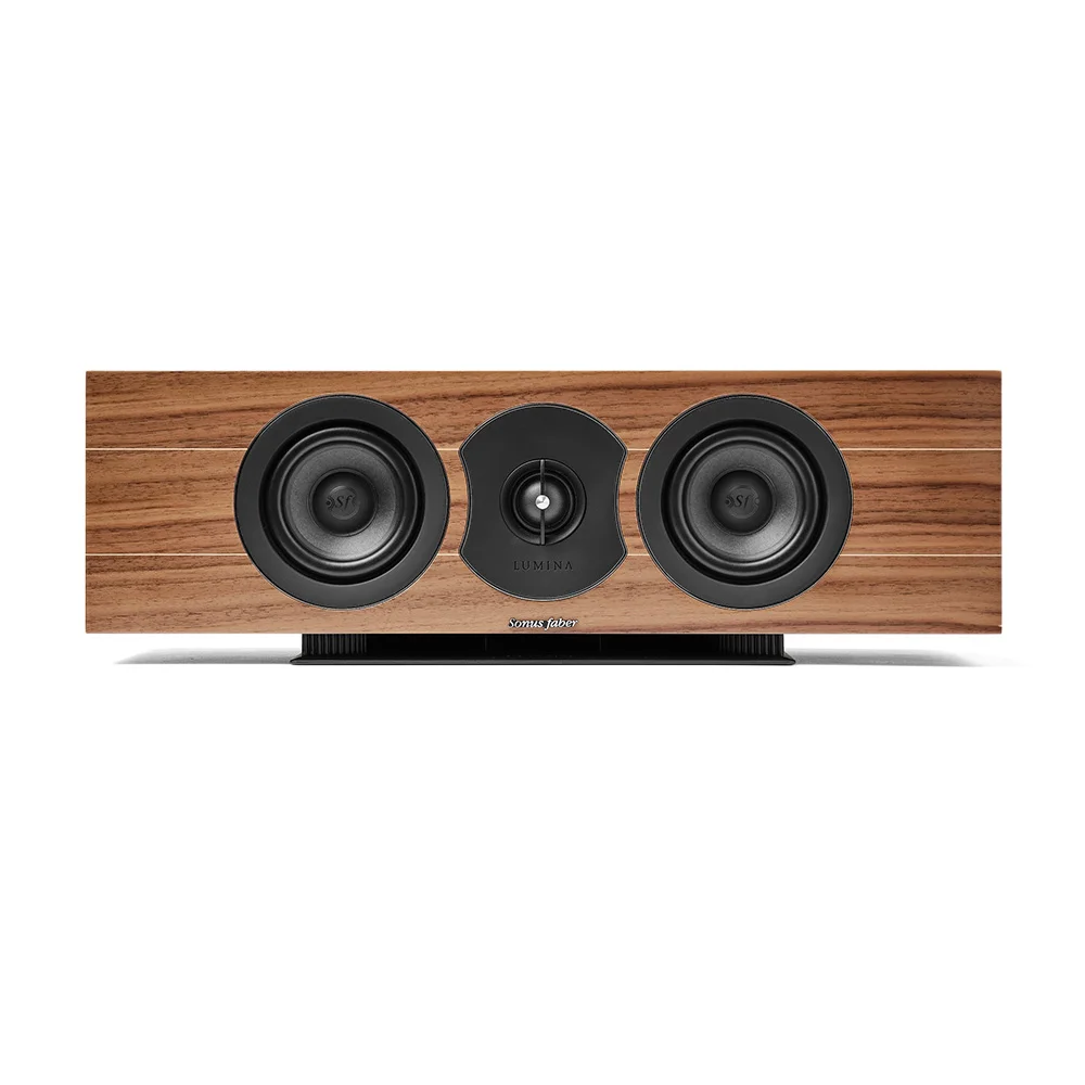Многослойное дерево и натуральный шпон передней панели колонки Lumina доступны в отделки знаковых колонках премиум класса, и включают орех и венге, оба в матовом исполнении со вставками из клена, а также третий вариант с отделкой в черном рояльном лаке. Все остальные поверхности колонки вручную обтянуты нашей легендарной черной кожей. Хромированные кольца вокруг динамиков подчеркивают формы и пропорции и придают яркость передней панеле, подчеркивая характер звучания Sonus faber.