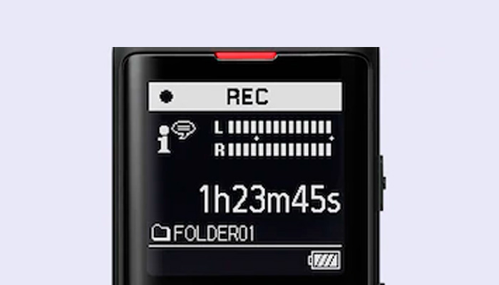 Диктофон серии UX570 оснащен более широким и ярким LED-дисплеем, на котором все четко и хорошо видно, поэтому не стоит переживать, что запись может быть запущена не вовремя.