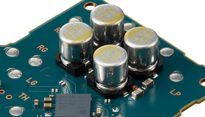 Высококачественные пленочные конденсаторы подают напряжение с линейным откликом на разных частотах, что способствует уменьшению степени искажения и уровня шума.