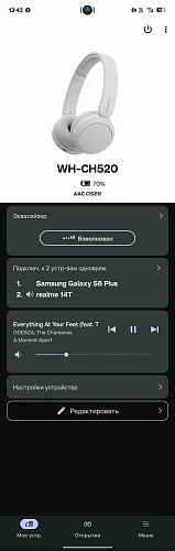 Наушники Sony WH-CH520 могут подключаться одновременно к двум устройствам Bluetooth. При поступлении входящего вызова, они сами определят нужное устройство и переключатся на него.