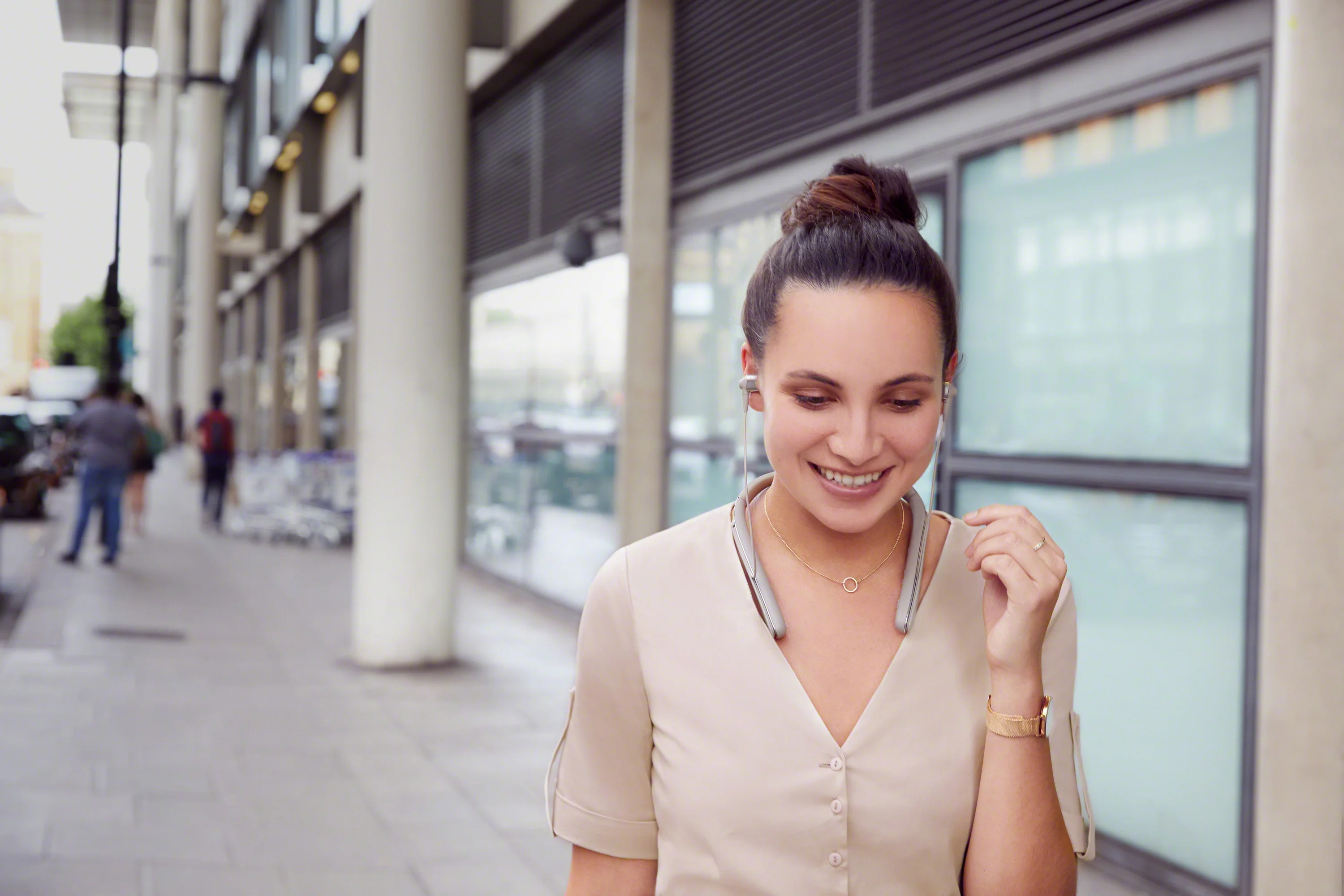 Высокофункциональные эргономичные наушники WI-1000X будут помогать вам в повседневных делах благодаря интуитивно понятному дизайну, удобному управлению кабелями по принципу молнии и вибросигналу при входящих вызовах.