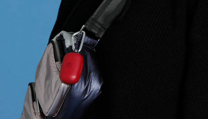 Компактное устройство может затеряться в сумке, поэтому в комплект с наушниками включен брендированный карабин, позволяющий удобно закрепить зарядный кейс на сумке или ремне.