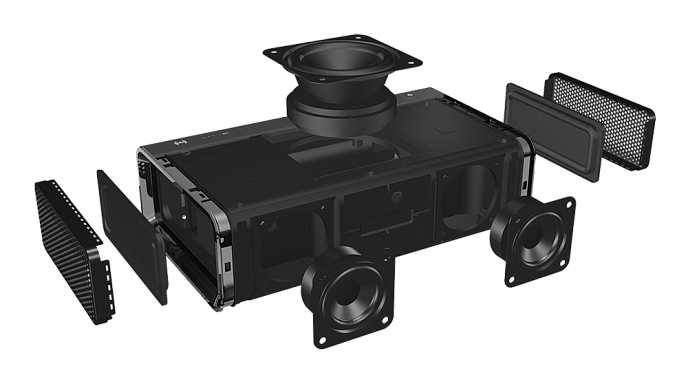 Кроме того, динамик оборудован двумя расположенными друг напротив друга боковыми пассивными излучателями, которые значительно расширяют звуковое пространство.