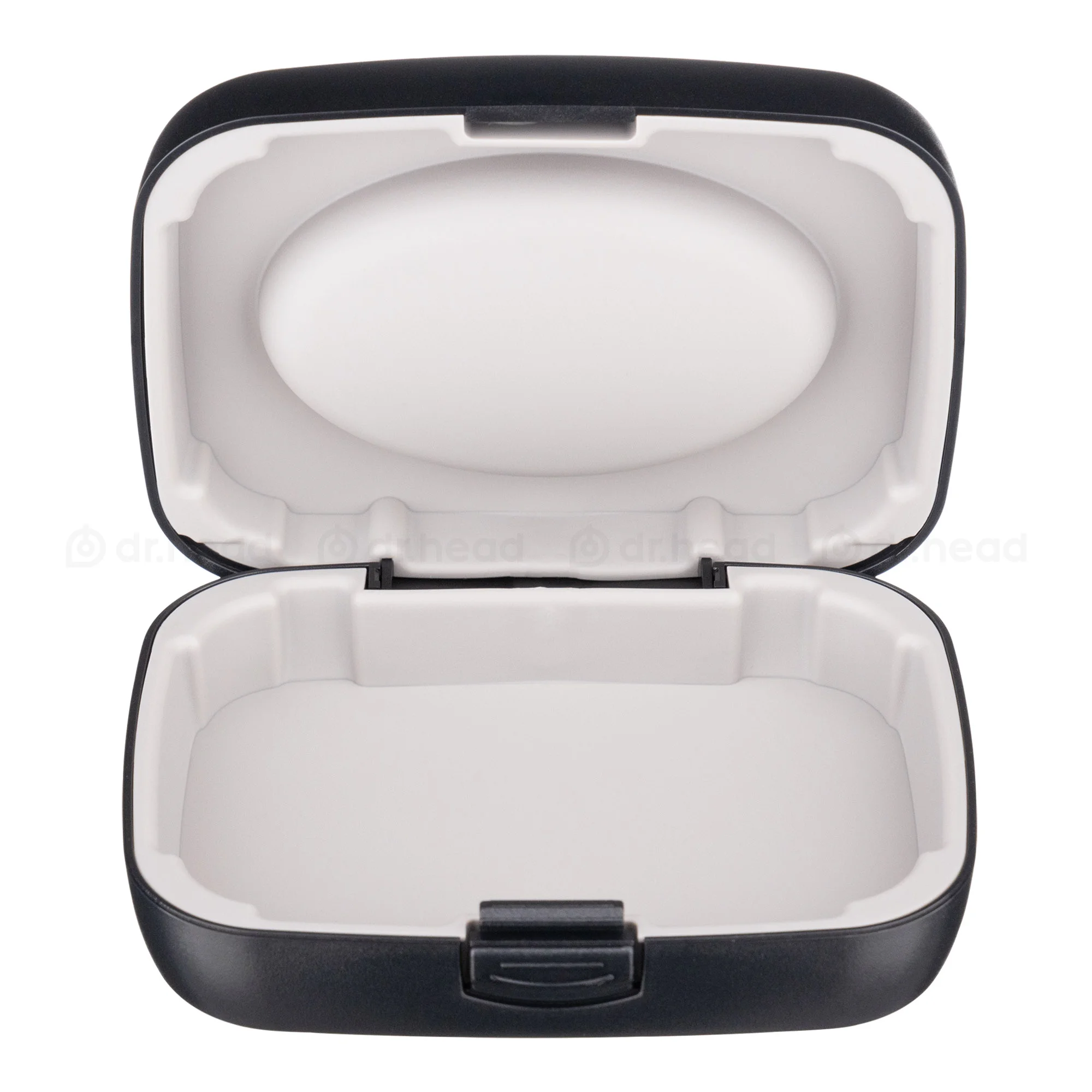Пластиковый чехол для хранения слухового аппарата или наушников.