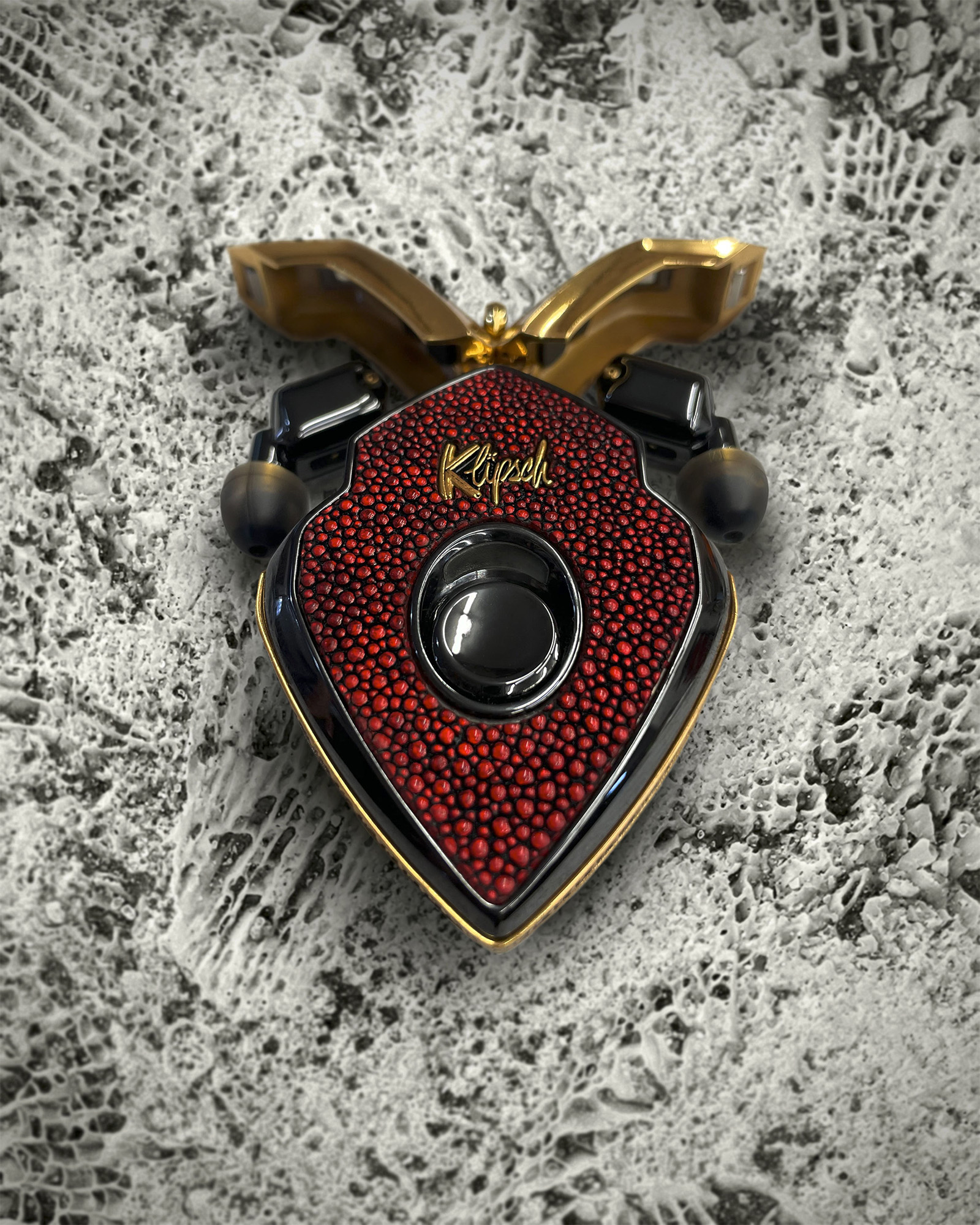 Подарите себе экстравагантные ощущения с филигранью из золотого ската. Этот оригинальный и современный дизайн отличается покрытием из 24-каратного золота, рельефной филигранью и натуральной текстурой ската. Премиальный дизайн этого устройства излучает изысканность и, несомненно, поднимет качество вашего звучания на самый высокий уровень.