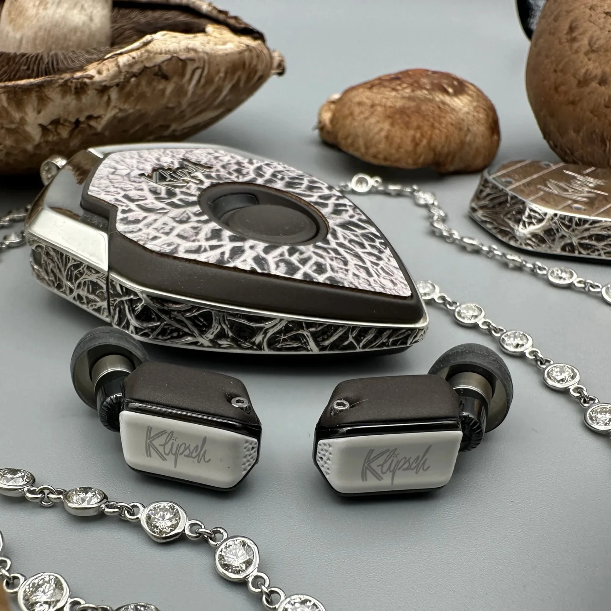 Мицелий в своей естественной форме сложен, красив и прочен. Как и формы и структура наушников T10, изготовленных на заказ. А поскольку T10 Bespoke также полностью возобновляемы, экологичны и бесконечно поддаеюся ремонту и модернизации, вставки для чехлов из кожи Рейши идеально сочетаются друг с другом. Чтобы еще больше отпраздновать это сотрудничество, Bespoke обратились к эксперту по ферментации и биодизайнеру Джейсону Уайту из Microbes vibes, который разработал трехмерное художественное произведение с радиальным рисунком из мицелия, созданное с помощью тиснения, чтобы придать веганской коже Рейши сочную текстуру. Впоследствии ЭКО-чернила, отверждаемые УФ-излучением, производства Roland добавляют цвета, тени и дополнительную визуальную интригу. Наконец, Bespoke обратились к всемирно известному ювелирному дизайнеру Томасу Виттельсбаху (Tomas Wittelsbach) с просьбой воплотить узор в виде корня мицелия в цельнолитом серебре 925 пробы, которое было покрыто коричневой эмалью с металлическим отливом, имитирующей грязь. Керамика YTPZ выполнена в шоколадно-коричневом цвете Cerakote в тон керамике YTPZ из полированного обсидиана черного цвета.