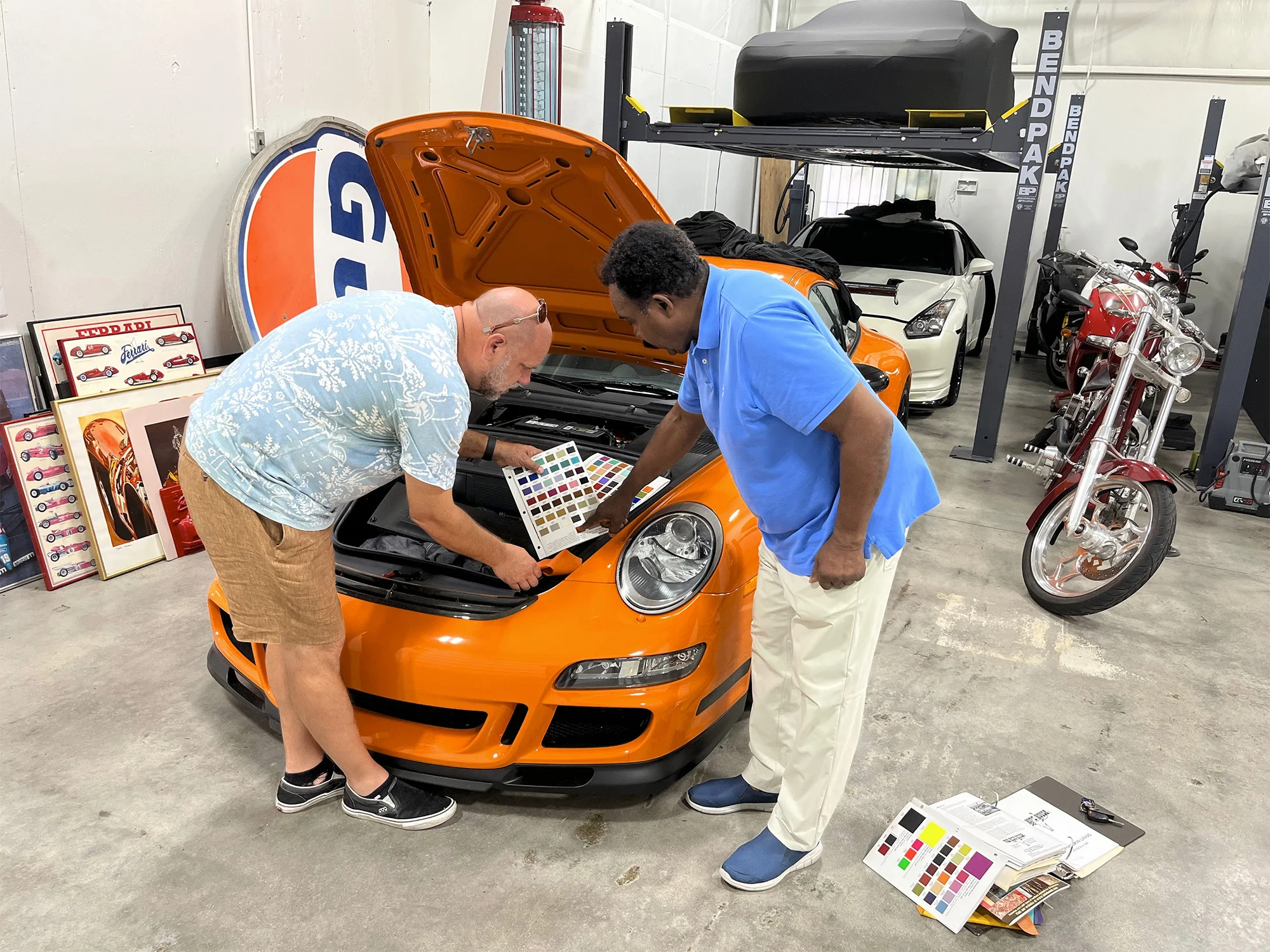 Модель Orange Crush T10, изготовленная на заказ, хрустящая, освежающая и яркая. Модель, выполненная из итальянской кожи Mastrotto ярко-оранжевого цвета, неизменно поднимает настроение.