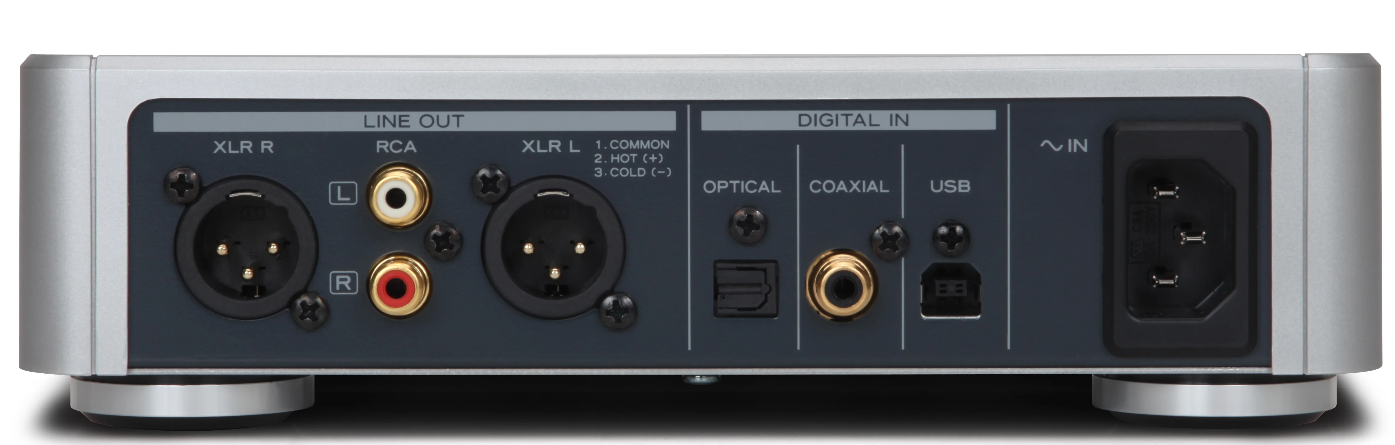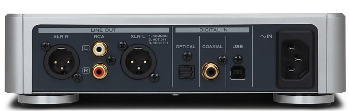 Устройство имеет три вида цифровых входов: коаксиальный, оптический и асинхронный USB 2.0 вход для подключения к PC или Mac. Поступающий цифровой сигнал преобразуется в аналоговый с помощью пары ЦАП-чипов премиального уровня Burr Brown PCM1795, работающих с аудиопотоком высокого разрешения (качество до 192 кГц/32 Бит).