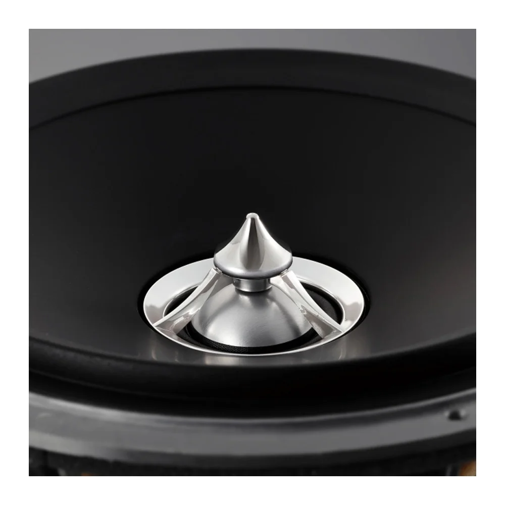 Фазовыравнивающая "пуля" оригинальной формы расположена на лицевой стороне диафрагмы твитера и обеспечивает воспроизведение звука с высоким разрешением и широкую звуковую сцену. Фазовыравнивающая "пуля" имеет модульную конструкцию и изготовлена из плотной латуни. Это защищает ее от излишней вибрации, которая может появляться из-за вибрации среднего блока, обеспечивая четкий звук с низким искажением.