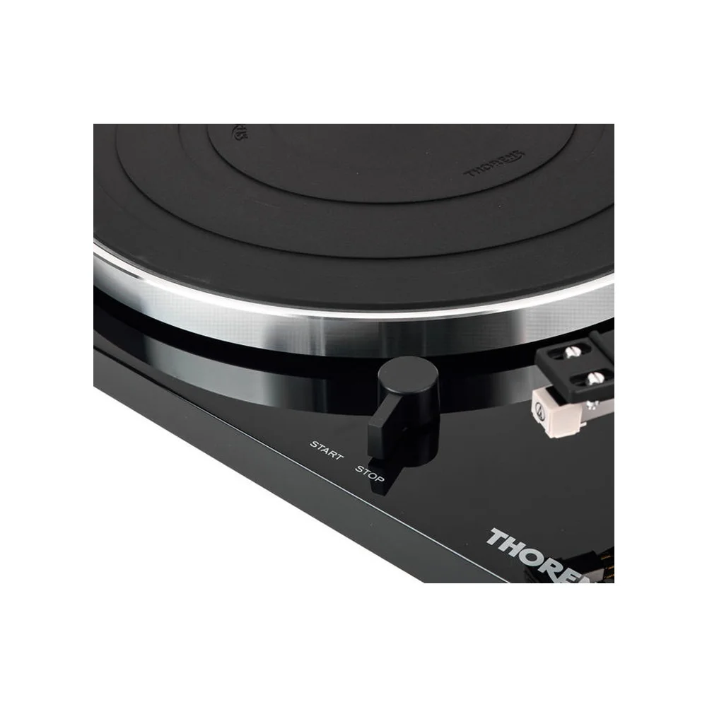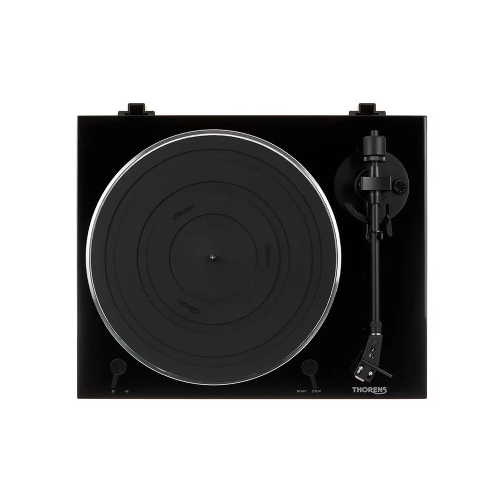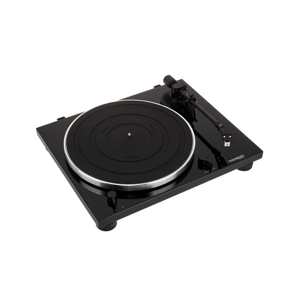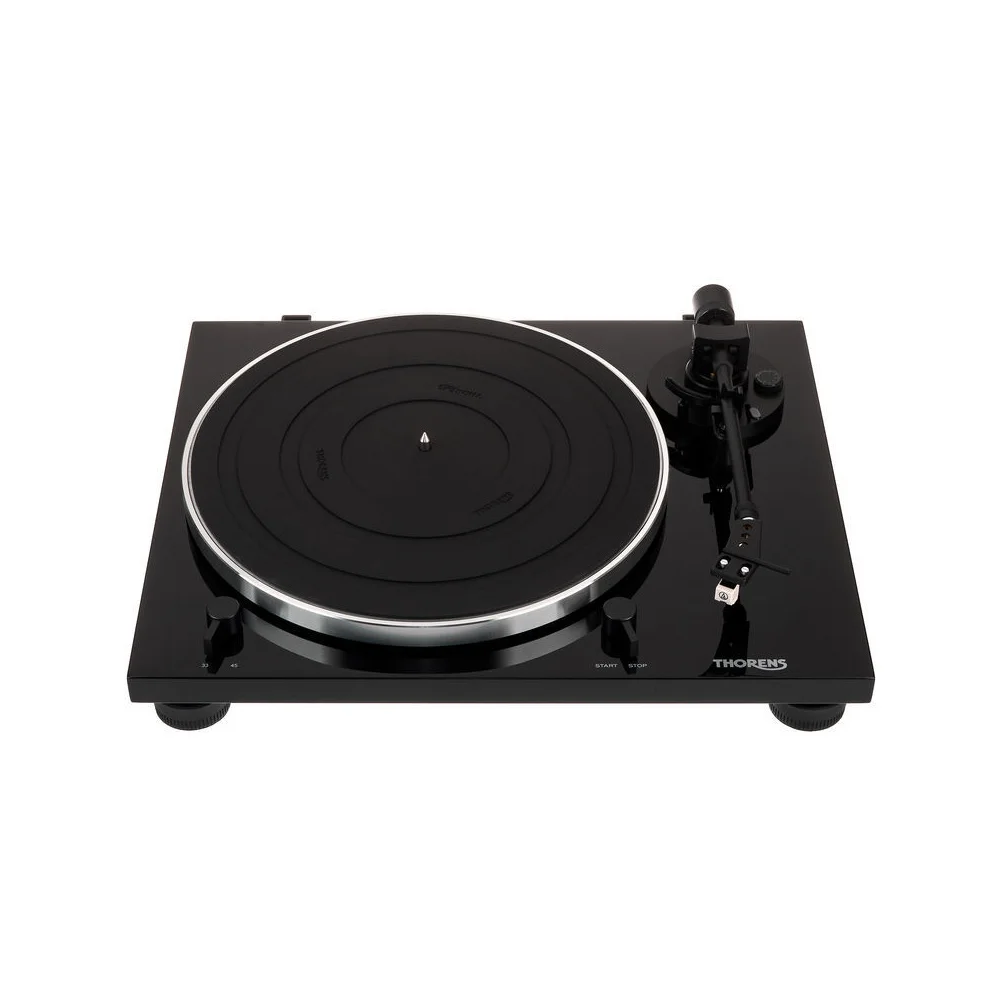 Thorens TD 201 имеет прецизионный опорный подшипник, который обеспечивает плавное и бесшумное вращение диска. На проигрывателе установлен прямой, статически сбалансированный алюминиевый тонарм со съемным шелом. В тонарме предусмотрена регулировка противоскатывающей силы. Проигрыватель Thorens TD 201 имеет съемный шелл, на котором штатно установлен и отрегулирован звукосниматель Audio Technica AT3600. Однако при желании на проигрыватель можно устанавливать и другие модели картриджей.
