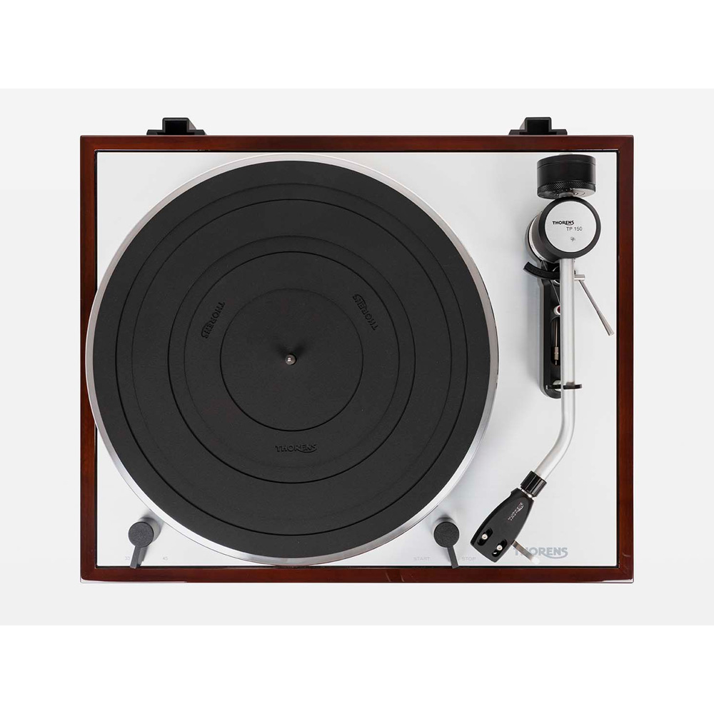Новый тонарм TP 150 также используется в недавно представленной модели Thorens TD 1500 и аналогичен TP 124, используемому в новом TD 124 DD. Он имеет эффективную массу 14 грамм, регулируется по высоте и азимуту и оснащен стандартным разъемом SME, поэтому можно легко переключать шеллы или устанавливать другие картриджи. Антискейтинг устанавливается с помощью скользящего груза в основании рычага, который регулируется нейлоновой нитью, направляемой по рубиновому подшипнику.