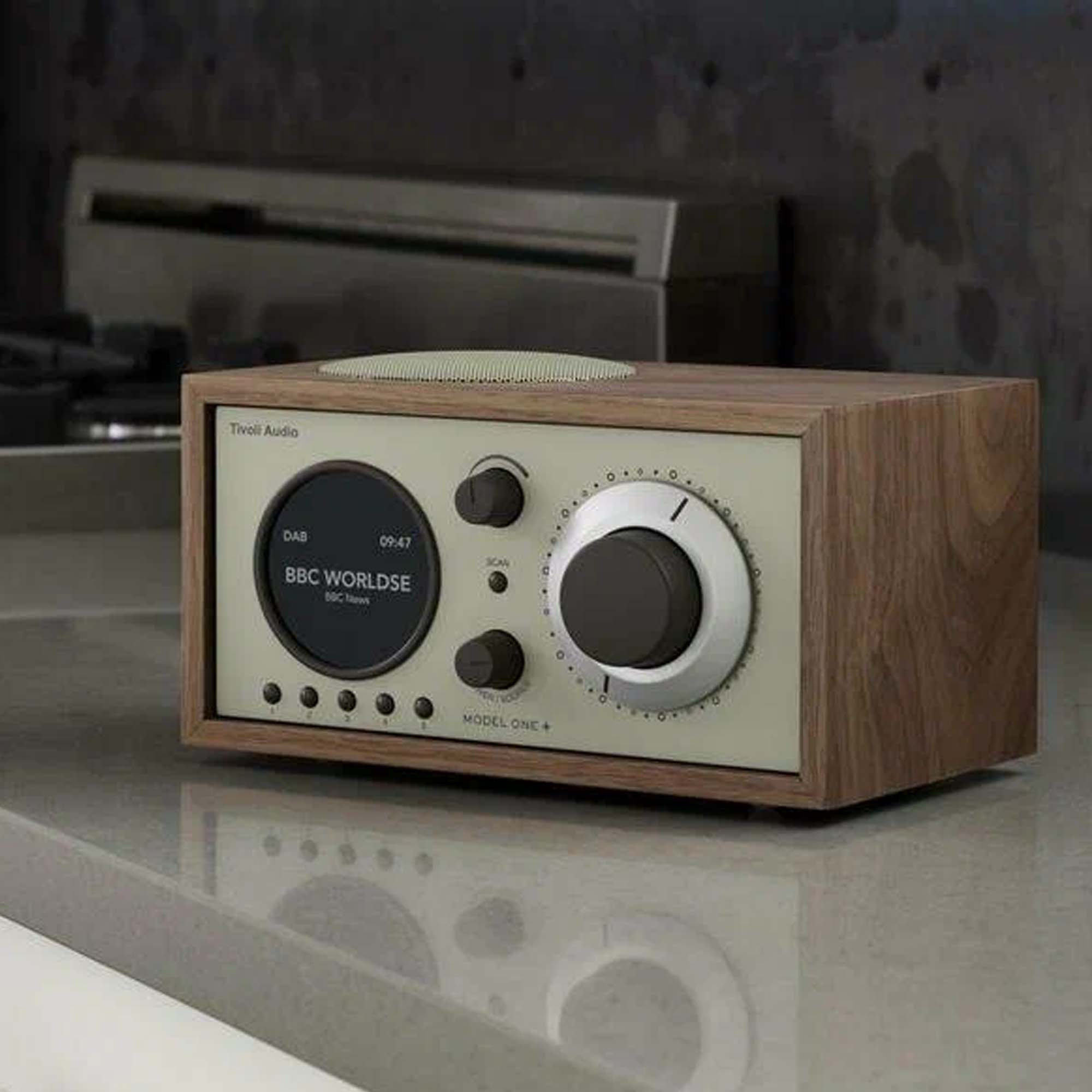 Корпус приемника изготовлен из MDF и доступен в трех вариантах внешней отделки. Tivoli Model One+ работает в FM-диапазоне, а также может принимать DAB-трансляции (при их наличии). Для регулировки громкости используется удобная рукоятка, а еще одна, расположенная на передней панели под ней, отвечает за выбор источника. Кроме двух диапазонов тюнера, приемник может принимать сигнал по Bluetooth или с внешнего источника сигнала, подключенного к линейному входу. Еще одним нововведением для классических моделей Tivoli можно считать расположенные под дисплеем кнопки для прямого выбора сохраненных в памяти станций. Модель комплектуется пультом ДУ, с которого можно получить доступ ко всем ее функциям. В частности, можно настроить время срабатывания будильника или запустить таймер автоматического отключения. Модель комплектуется съемной телескопической антенной.