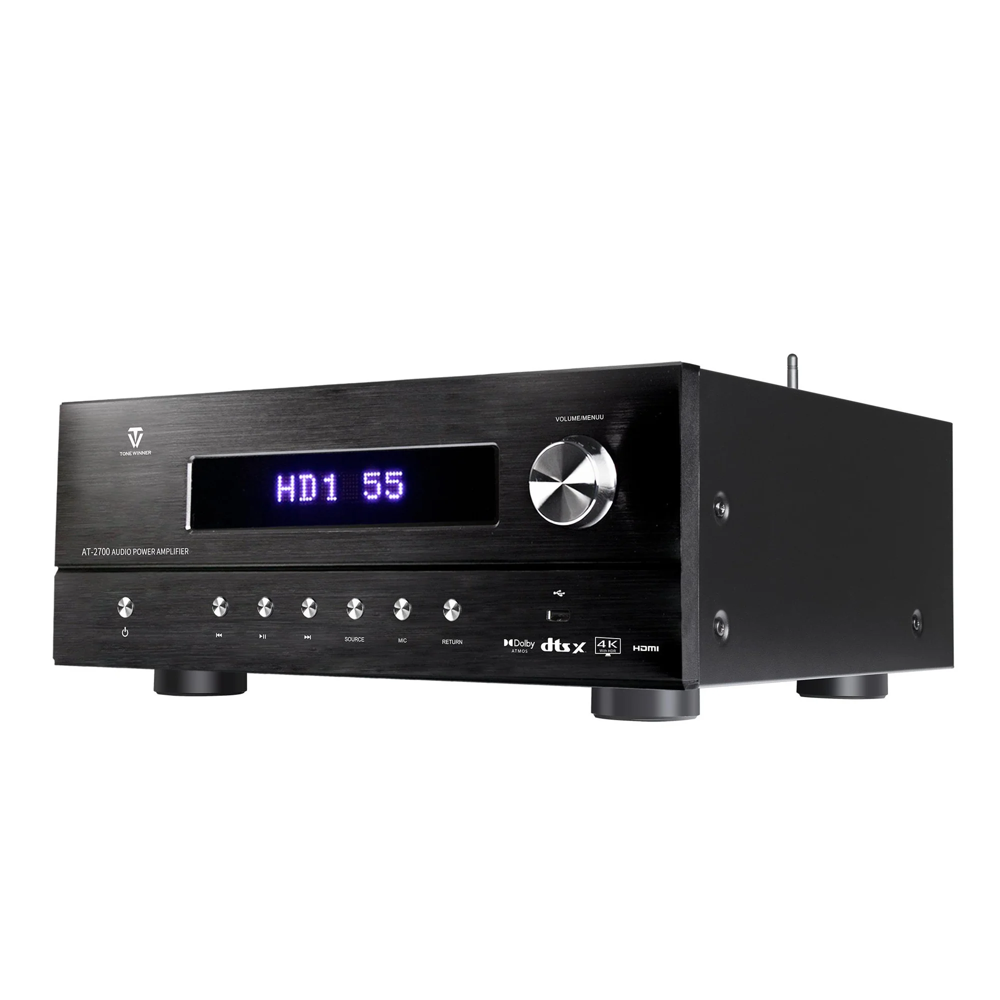 AT-2700 - это AV-ресивер для домашнего кинотеатра. Он сочетается с системой домашнего кинотеатра, персональным музыкальным центром и профессиональной караоке-системой. Профессиональная 5.1.2-канальная караоке-система с поддержкой DTS: X. Обратный канал ARC Voice Back позволяет любому Smart TV превратиться в машина для пения. Это высококачественный центр, который может удовлетворить семейные развлечения.
