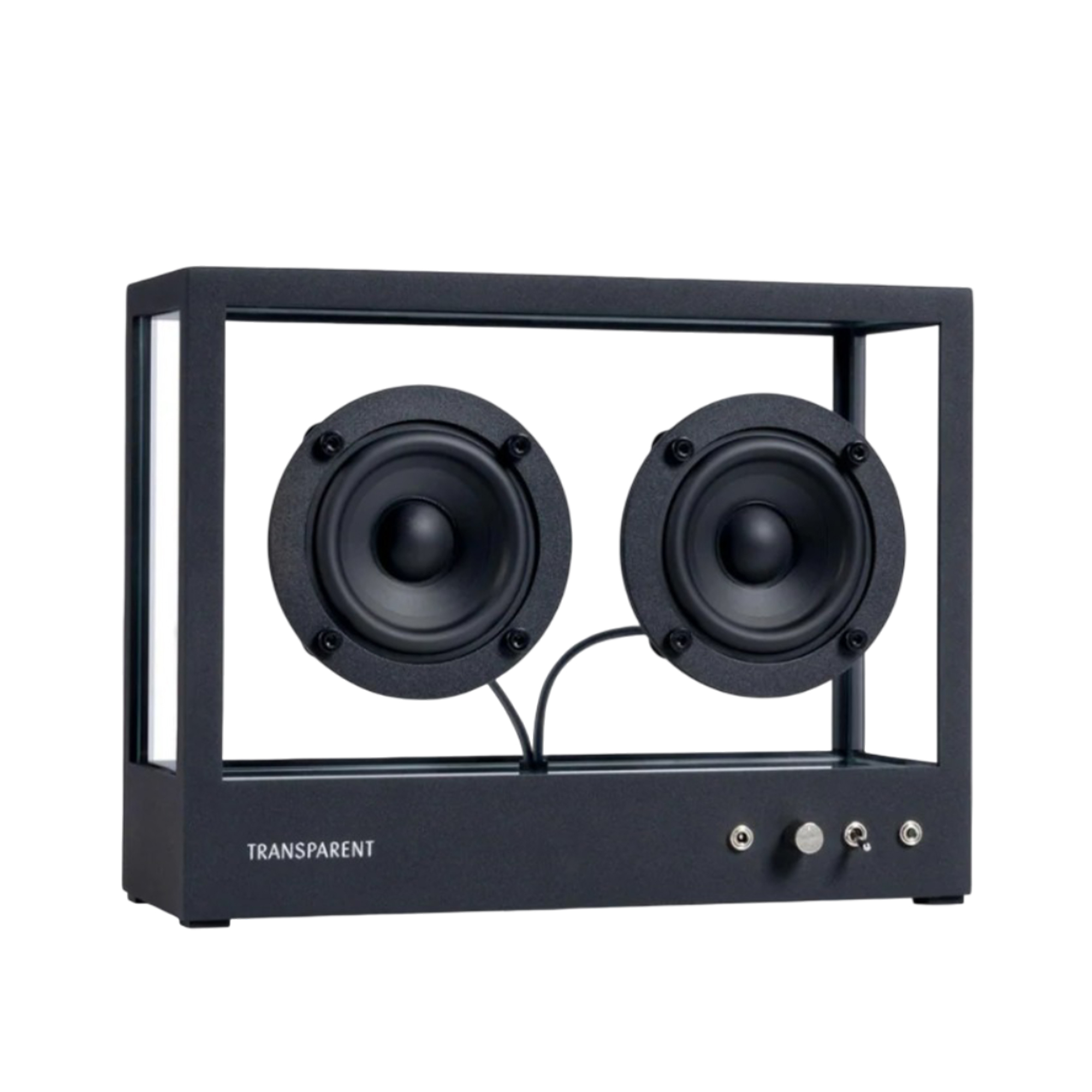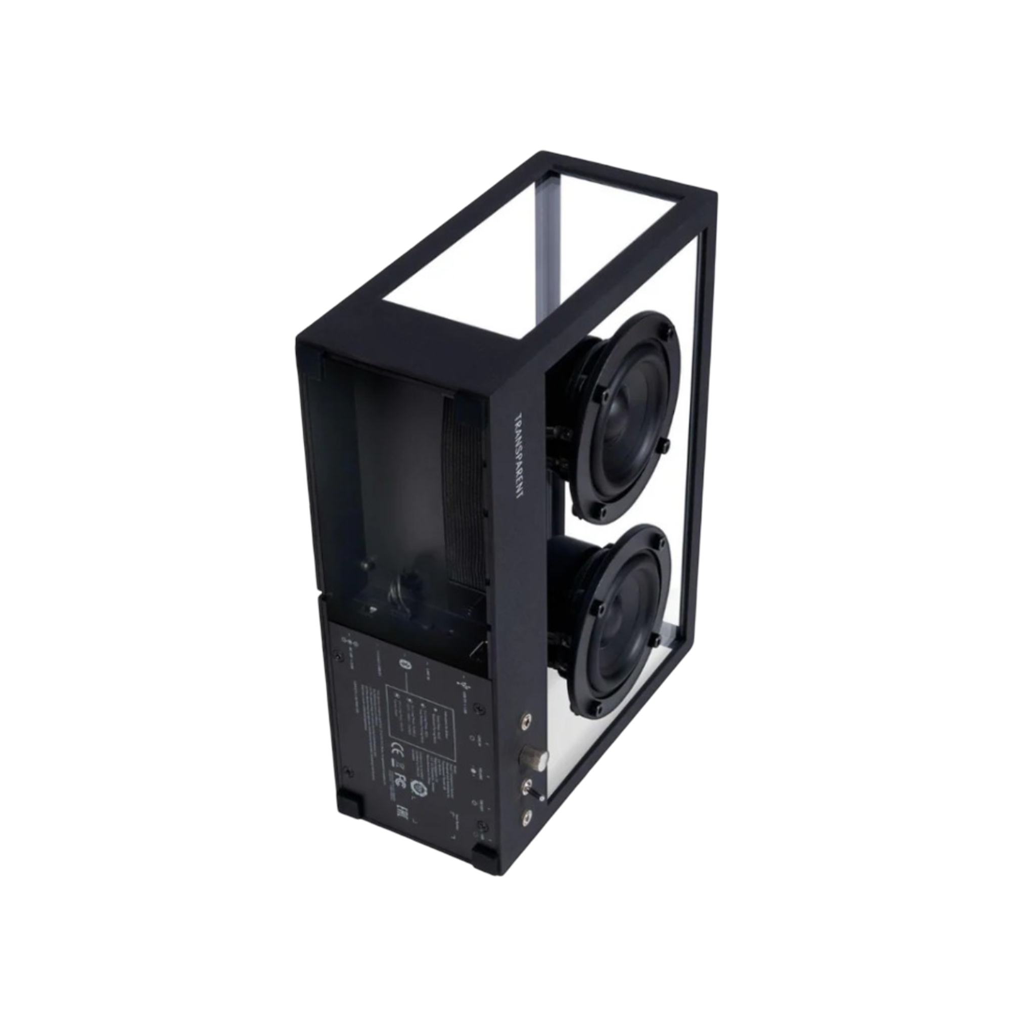 Ключевая особенность Small Transparent Speaker — это ее эстетическая прозрачность. Корпус выполнен из прочного закаленного стекла и обрамлен цельной алюминиевой рамой. Эта минималистичная конструкция позволяет колонке буквально растворяться в интерьере, демонстрируя свою внутреннюю механику и электронику как часть дизайна.