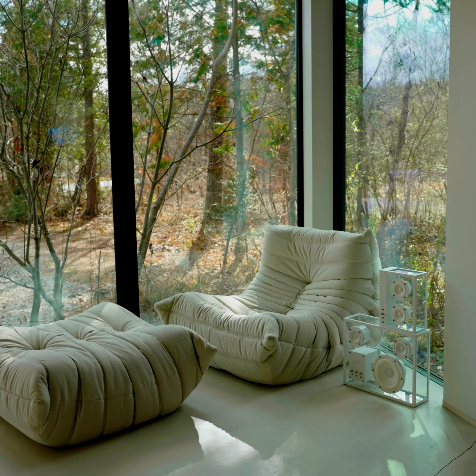 Основу корпуса составляют панели из закаленного стекла, заключенные в строгую раму из цельного черного или белого алюминия. Выбор материалов обусловлен не только эстетикой, но и акустической инертностью: стекло обладает высокой плотностью и весом, что эффективно гасит вибрации, предотвращая окрашивание звука корпусными резонансами.