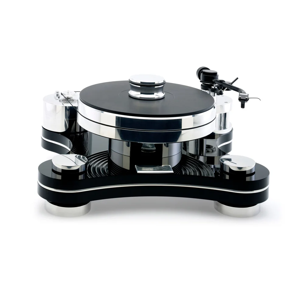 База для установки тонарма представляет собой жесткую конструкцию, схожий принцип развязки (через достаточно тонкие и жесткие опоры между верхней и нижней поверхностями базы) тонарма и стола нередко встречается среди современных проигрывателей. Конструкция стола позволяет устанавливать две базы под тонармы, что, несомненно, расширяет возможности проигрывателя. Привод диска пассиковый.