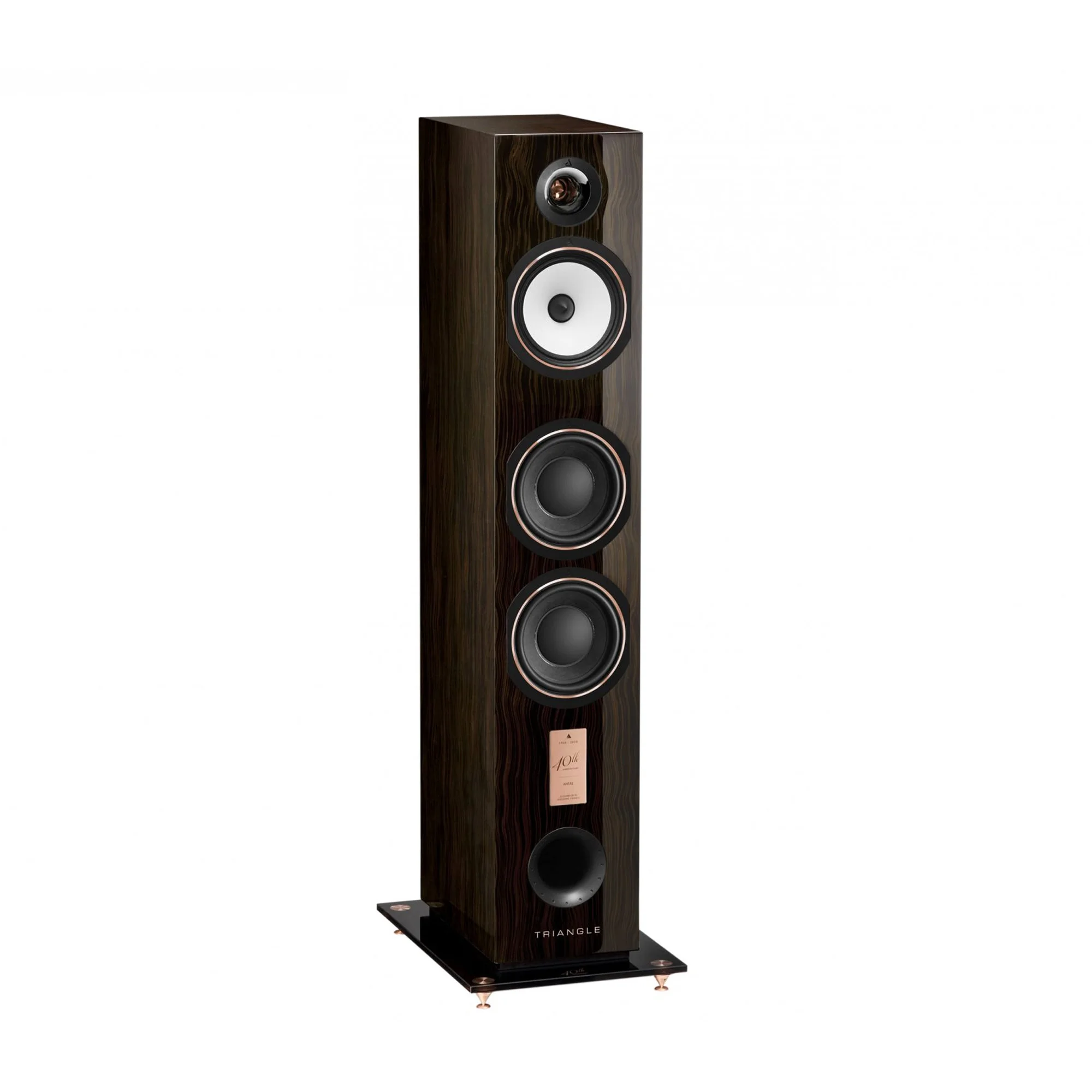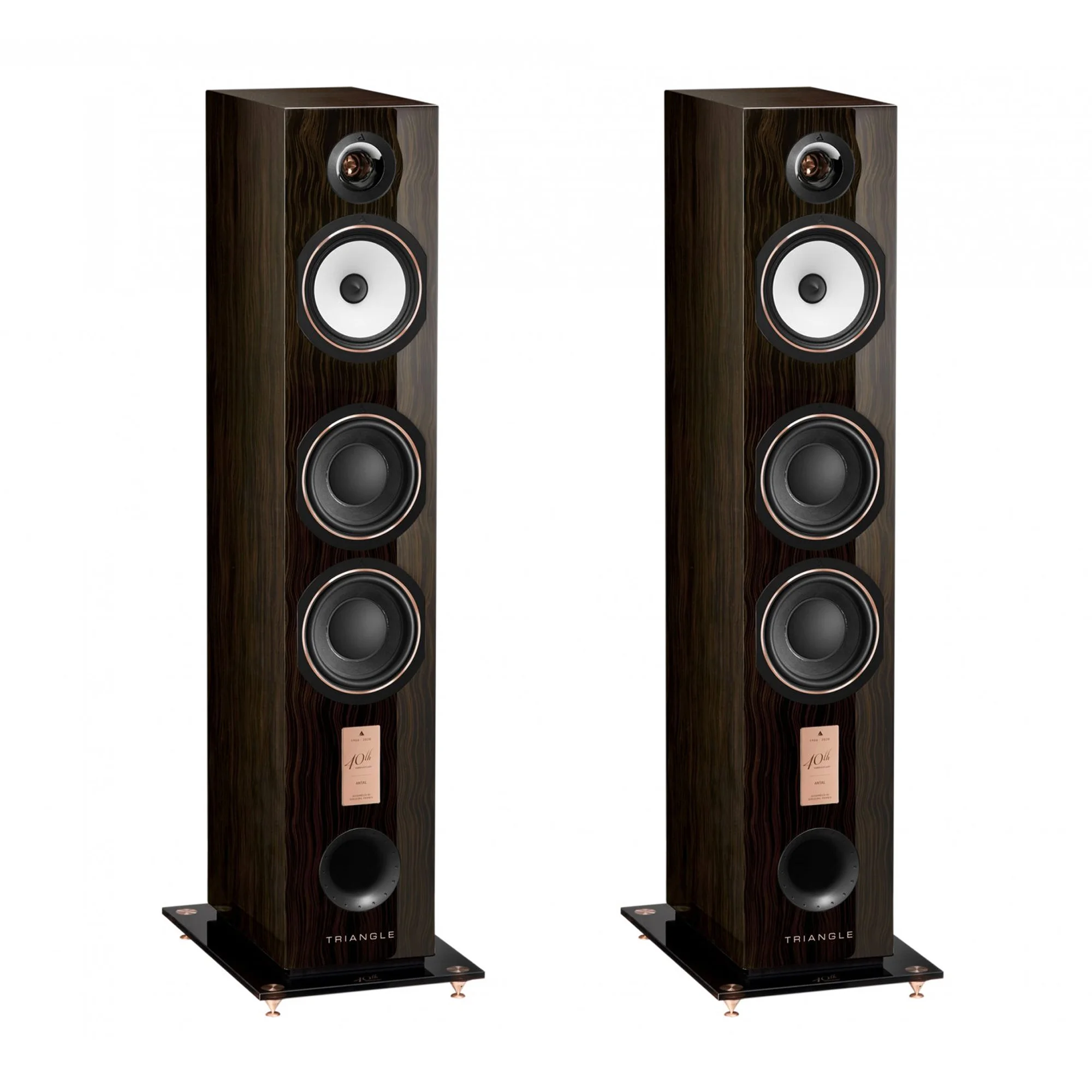 Трехполосная напольная акустика Triangle Antal 40th Anniversary, выпущенная к 40-летнему юбилею знаменитой французской компании, имеет безупречную конструкцию и обладает превосходным звучанием. Колонки оснащены новым твитером с магниевым куполом, анодированным розовым золотом, что является одной из отличительных особенностей данной модели. Также в Triangle Antal 40th Anniversary используется фирменный СЧ-динамик с диффузором из натуральной целлюлозы и два мощных басовика, которые воспроизводят глубокие и сфокусированные низкие частоты. Юбилейная акустика Triangle Antal 40th Anniversary производится на заводе компании во Франции.