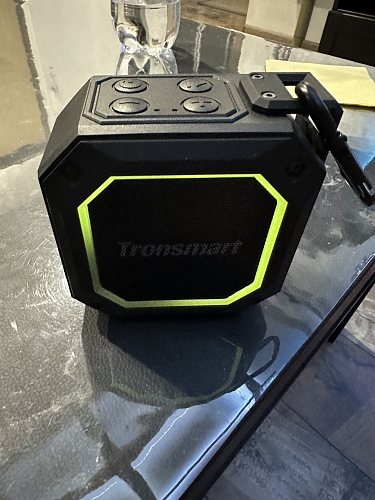 Tronsmart Element Groove представляет из себя небольшую восьмиугольную призму с очень прочным корпусом. Она настолько мала, что легко помещается в ладони взрослого человека. Спереди у колонки расположен основной активный динамик, защищенный металлической решеткой, которая в свою очередь надежно прижимается по всему периметру к корпусу пластиковой рамкой. Торцы корпуса защищены цельной плотной силиконовой оболочкой, которая с амортизирует и поглотит удары, в случае падения акустической системы.