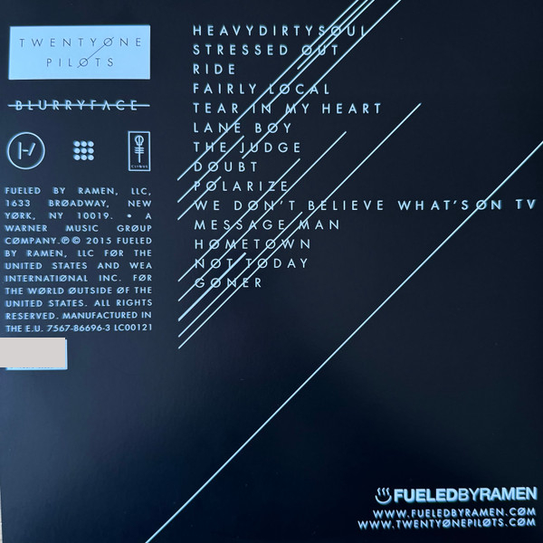 Музыкально альбом поражает разнообразием: здесь органично переплетаются альтернативный рок, хип-хоп, инди-поп и электроника. Продюсерская работа Майка Элизондо, Майка Кросси, Тима Андерсона и Рики Рида позволила сделать звук плотным, современным и при этом узнаваемым с первых секунд. Хиты “Stressed Out” и “Ride” не только ворвались в топы Billboard Hot 100, но и стали гимнами поколения, а трек “Stressed Out” принес группе премию «Грэмми». Важный исторический факт: Blurryface стал первым альбомом в истории, где каждая композиция получила золотую сертификацию RIAA - достижение, до сих пор считающееся уникальным.