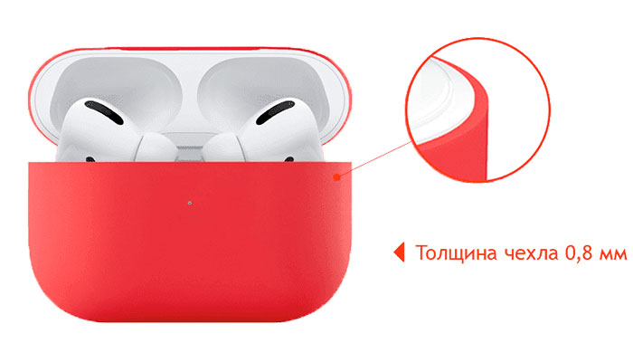 Толщина чехла всего 0.8 мм. Один из самых тонких чехлов на рынке. Чехол плотно фиксируется на кейсе AirPods, не слетает и не увеличивает его в размере.
