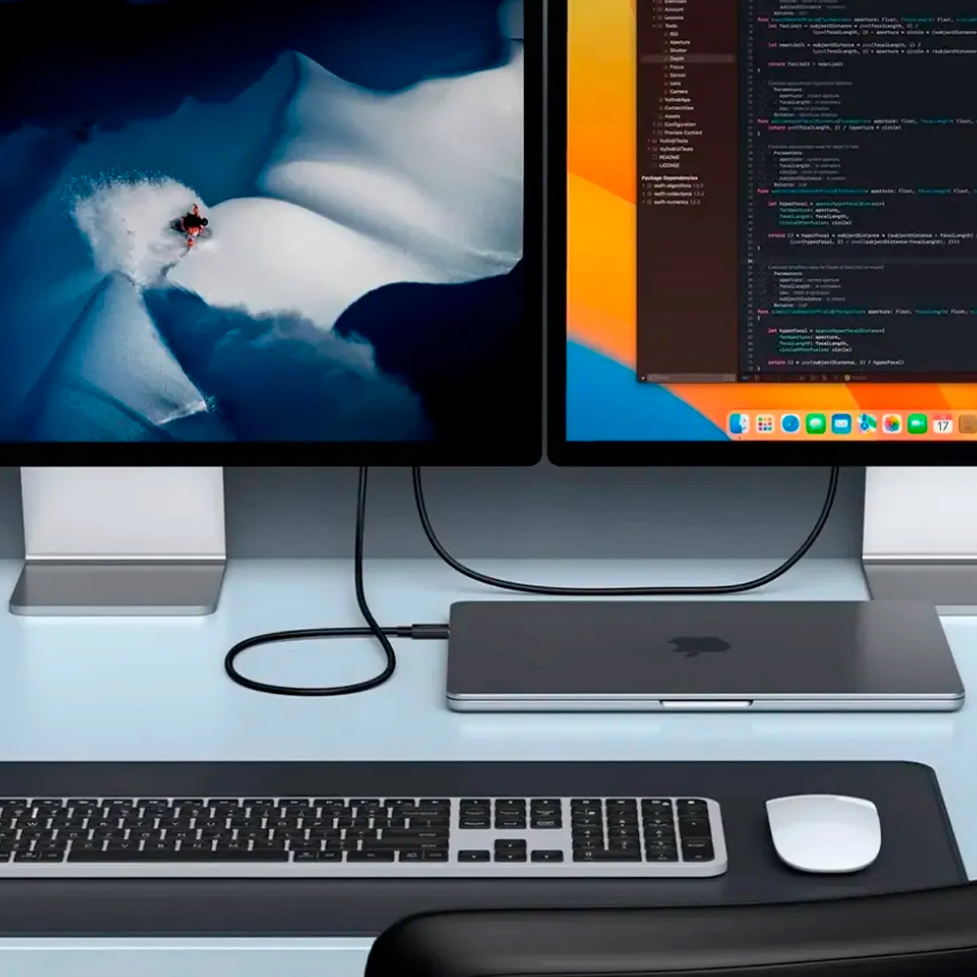 Кабель UGREEN USB-C гарантирует надежную проводимость и зарядку, защищая ваши устройства от повреждений из-за чрезмерного тока. Наслаждайтесь разрешением до 16K/60 Гц при подключении этого кабеля Thunderbolt 5 к внешнему монитору с поддержкой Thunderbolt.