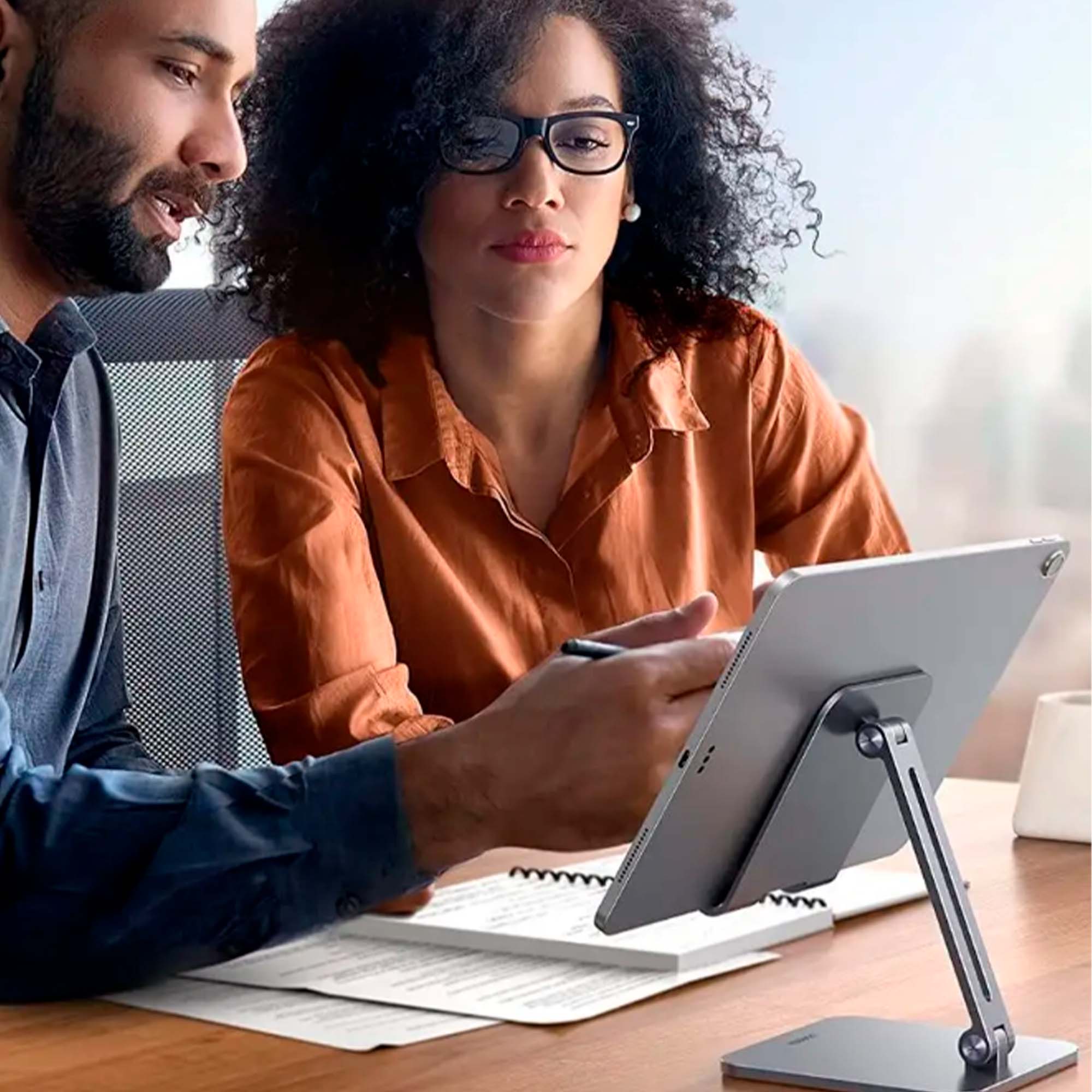Подставка совместима с большинством смартфонов и планшетов, имеющих размеры от 4 до 12.9 дюймов. Основание имеет резиновые накладки, предотвращающие скольжение и обеспечивающие стабильность устройства. Подставка компактна и легкая, что позволяет вам взять ее с собой в поездке или использовать дома, на работе или в школе. Идеально подходит для просмотра фильмов, чтения электронных книг, прослушивания музыки, видео-трансляций, проведения видео-конференций и других повседневных задач.