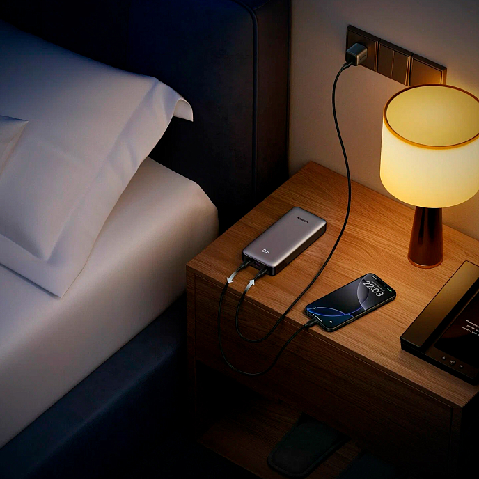 Аккумулятор поддерживает быструю зарядку мощностью до 30 Вт, что позволяет зарядить ваш гаджет в кратчайшие сроки. Емкость аккумулятора составляет 20000 мАч, что обеспечивает продолжительное время работы ваших устройств.