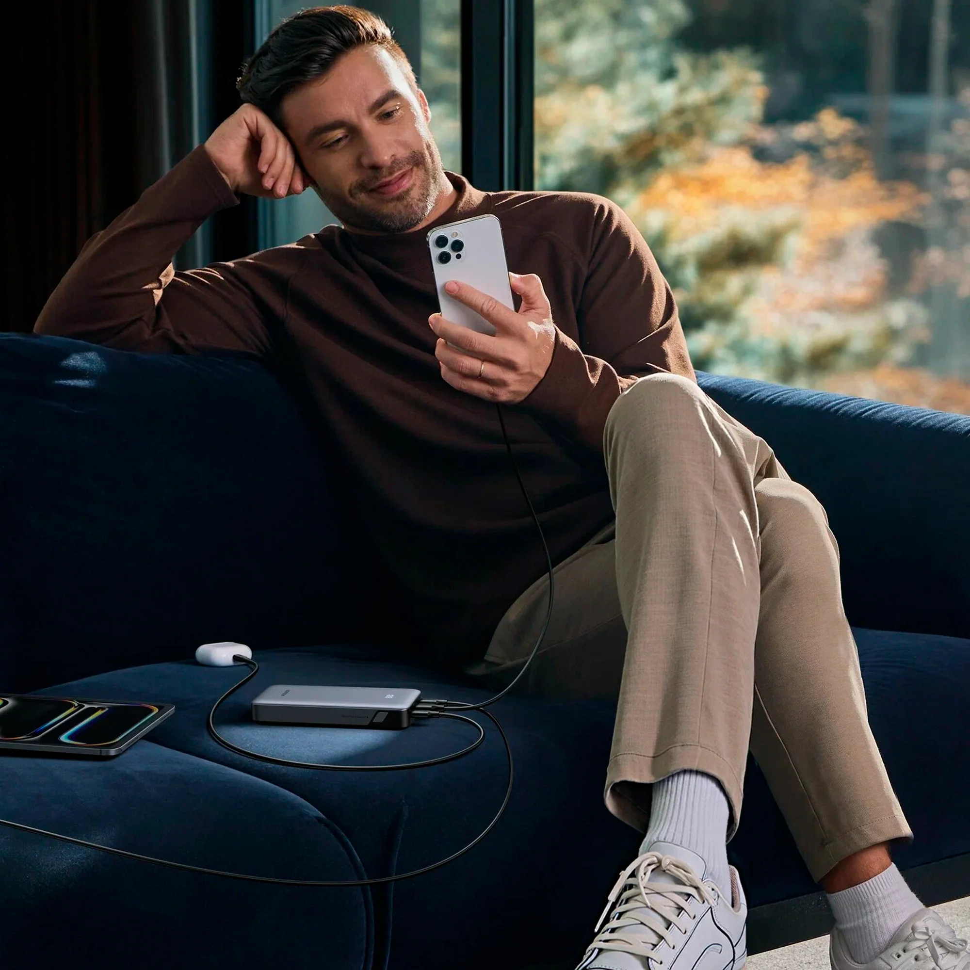 Аккумулятор оснащен портами USB-C и USB-A. Это позволяет заряжать устройства с различными разъемами одновременно. Порт USB‑C поддерживает до 30 Вт как на входе (зарядка внешнего аккумулятора), так и на выходе (зарядка устройств).
