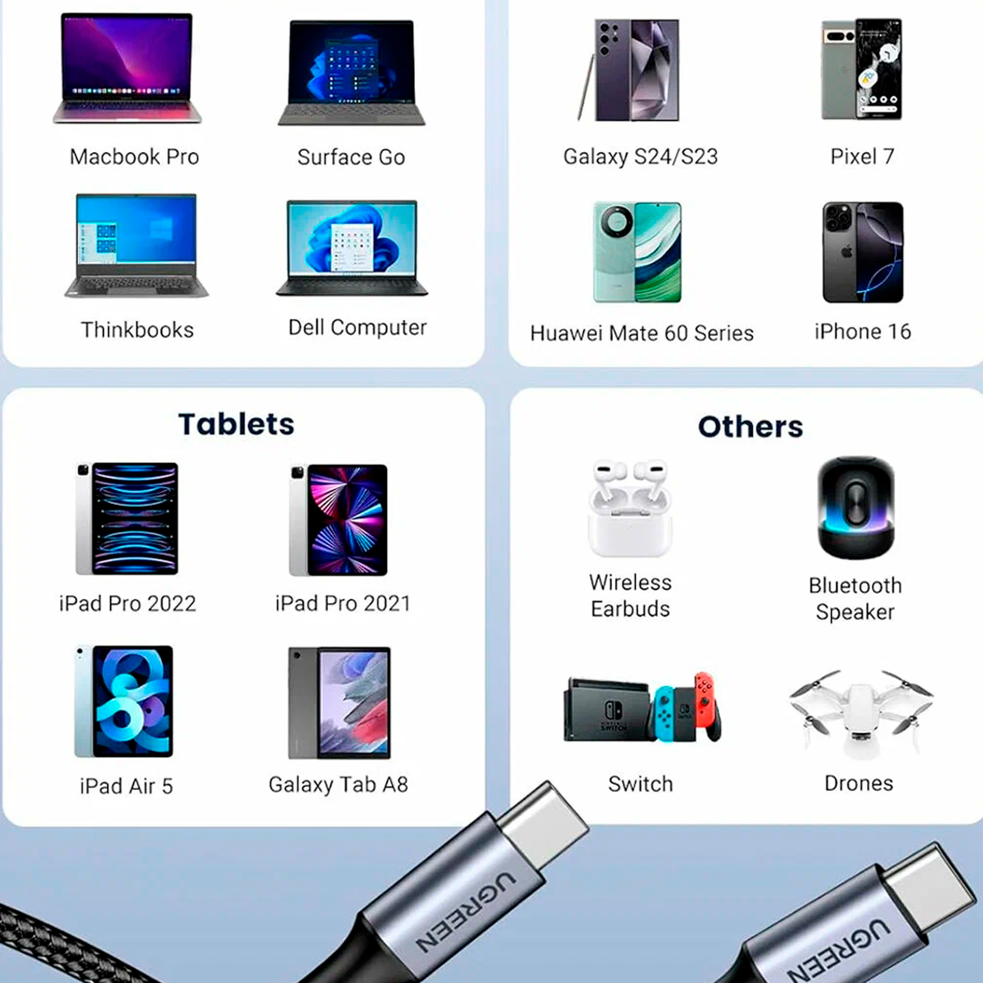 UGREEN US316 – это не просто кабель, а надежный помощник в мире современных технологий. Его сочетание мощности, компактности и прочности делает его идеальным выбором для тех, кто ценит качество и удобство. Независимо от того, нужна ли вам быстрая зарядка ноутбука или синхронизация данных между устройствами, этот кабель справится с задачей на отлично.