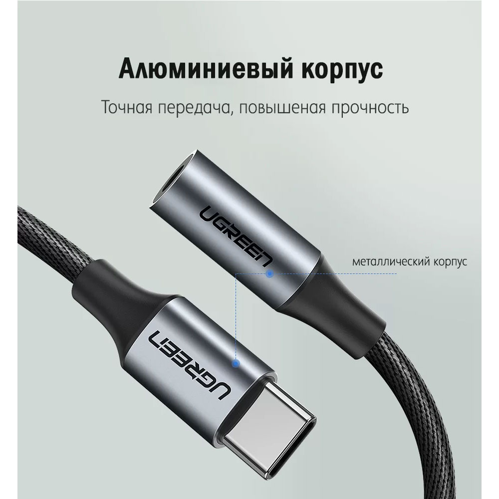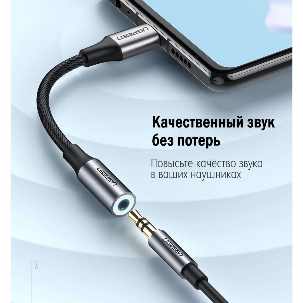 UGREEN. Аудиоадаптер USB C - AUX Jack 3.5 мм в нейлоновой оплетке длинною 10 см.