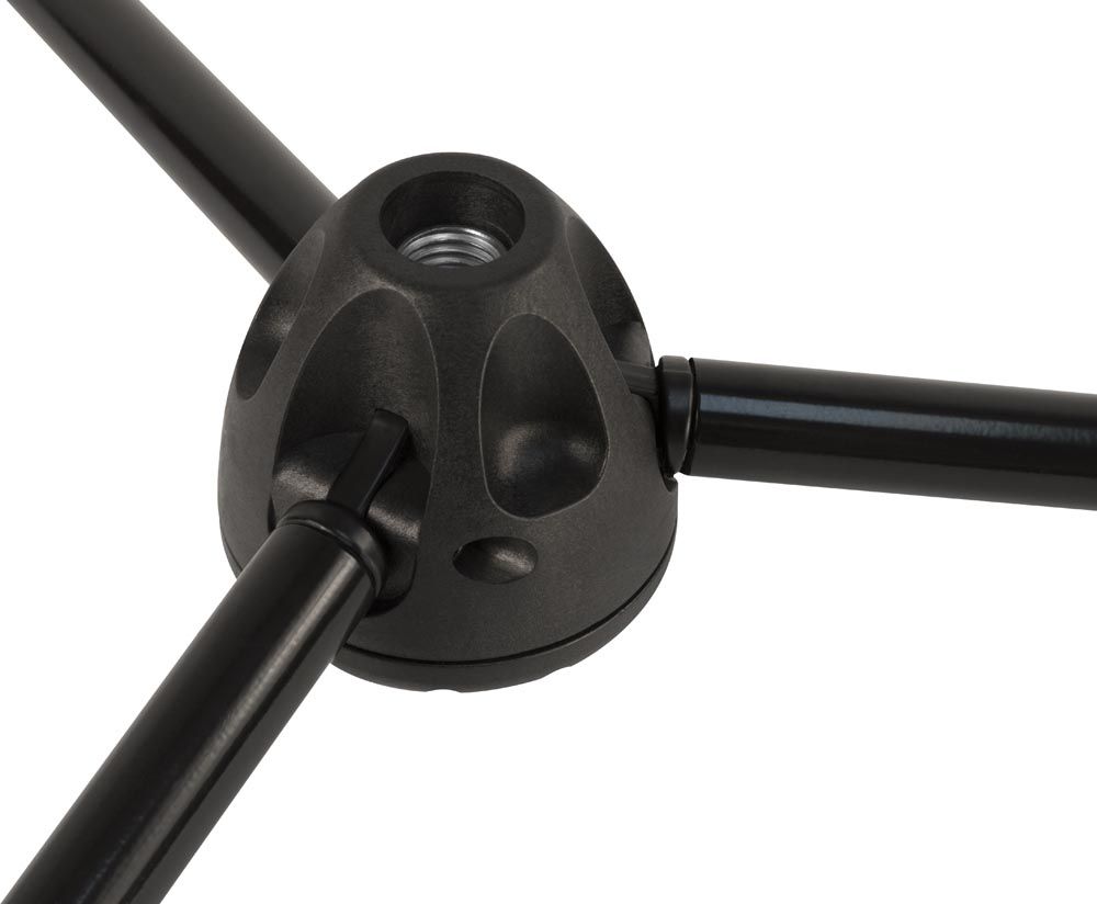 Стойки в линейке Pro Series R оснащены новым механизмом, который позволяет ножкам штатива складываться вверх для быстрого и удобного хранения, а механизм блокировки основания позволяет надежно фиксировать их на месте во время использования. Основание и запорный механизм изготовлены из прочного, легкого, армированного пластика.