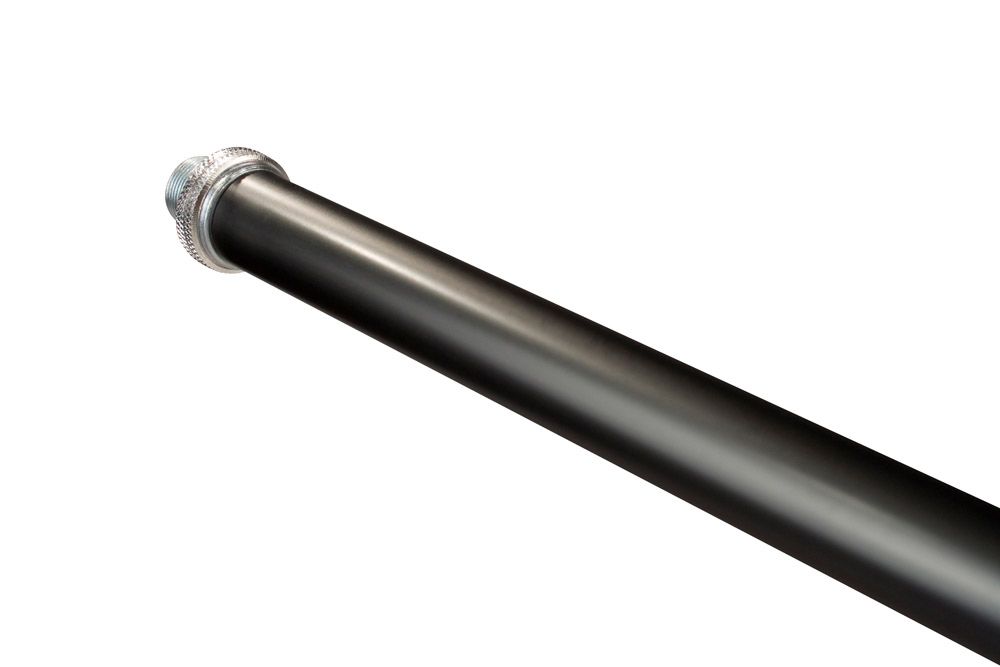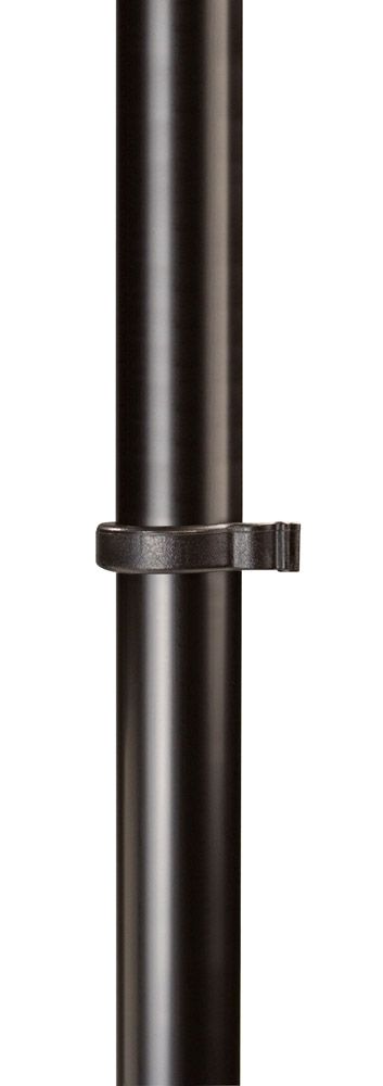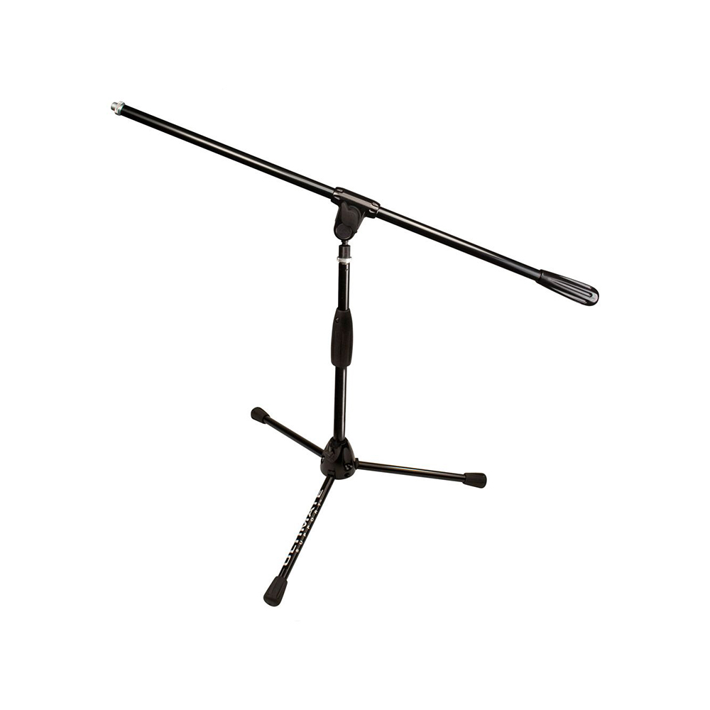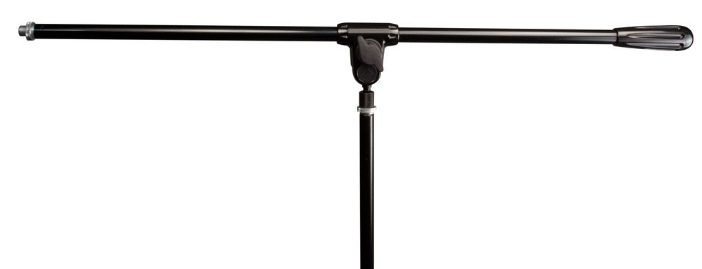 Высота стойки регулируется от 490 до 760 мм, а фиксированная длина стрелы составляет 870 мм. Модель выполнена из стального профиля. Микрофон крепится к стойке на соединительную резьбу 5/8".