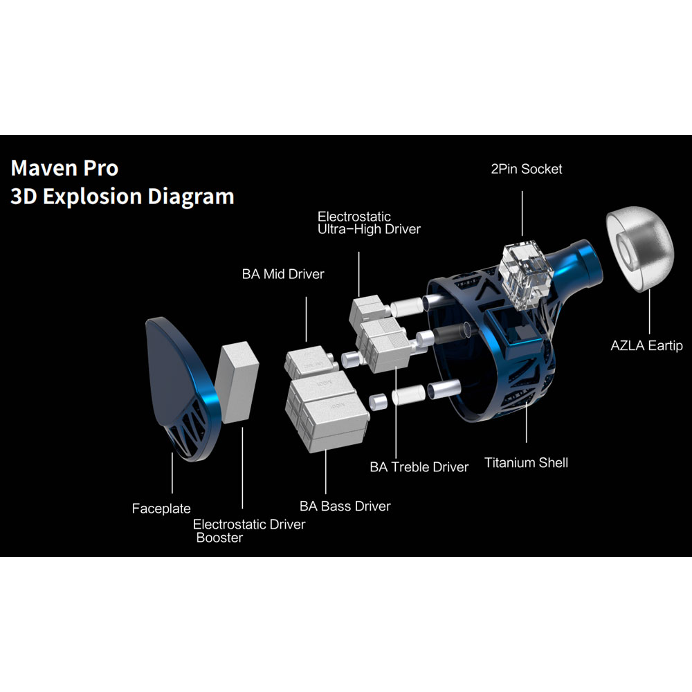Электростатические драйверы используются для расширения диапазона сверхвысоких частот в дополнение к традиционным арматурным драйверам. В такой комбинации диапазон частотной характеристики может достигать 70 кГц. По сравнению с Maven, Maven Pro имеет скорректированную структуру кроссовера и конфигурацию драйвера, что значительно улучшает басовую характеристику.