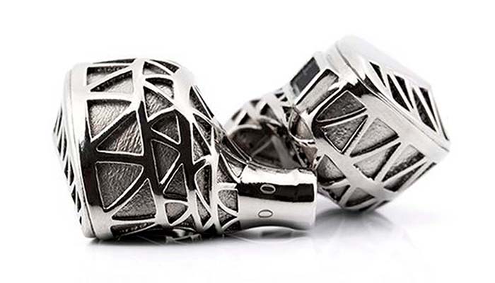 3D печать из титанового сплава позволяет творить чудеса. Разнообразные узоры создают эффект двухслойного корпуса. Если у младшей модели так был выполнен только фейсплейт, то у UM Maven – весь корпус. Качество выполнения элементов корпуса превосходное. Кроме того, титановый сплав не подвергается коррозии, а значит наушники надолго сохранят свой эффектный и необычный внешний вид.