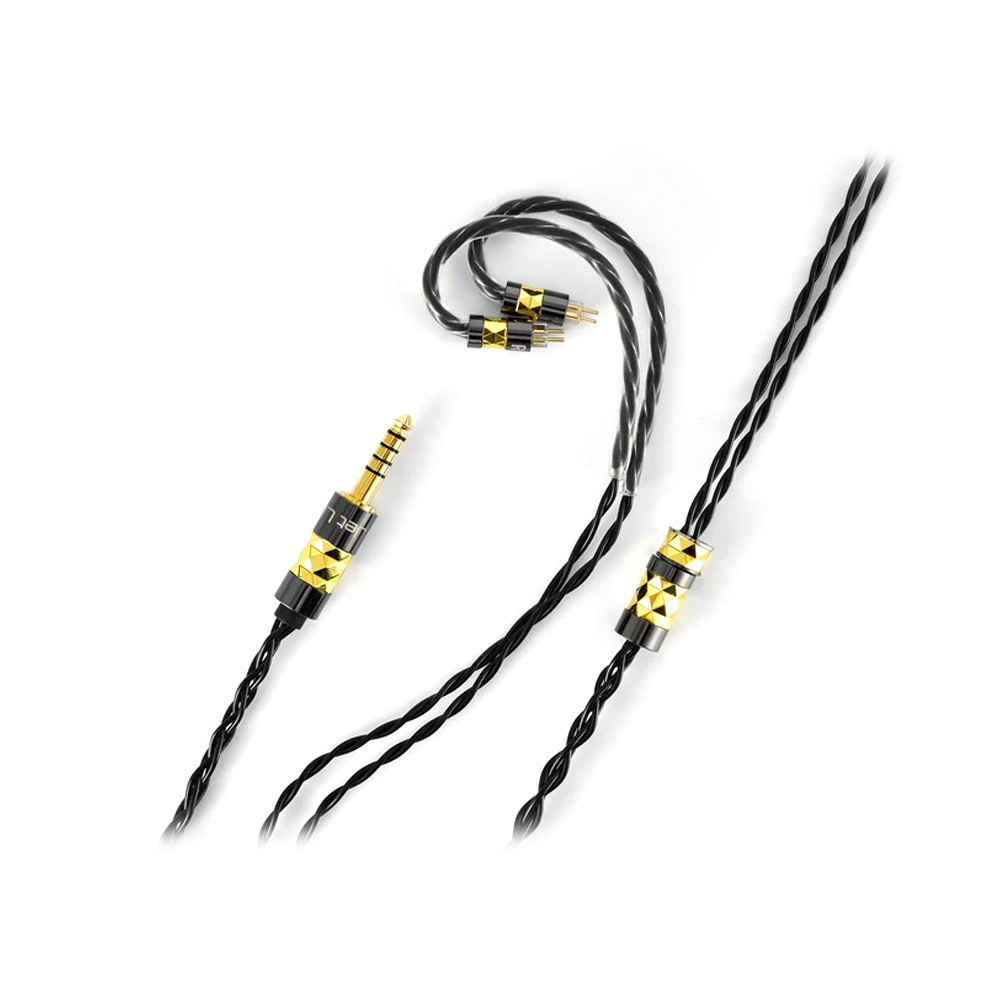 Кабель Jet Link производства Effect Audio с 4 многожильными проводниками из меди 26awg, обернутый в глянцевый ПВХ, с глянцевой черной и золотой фурнитурой "под керамику", которая подходит к керамическим наушникам. Кабель Jet Link задуман как более нейтральный и откровенный, чем стоковый кабель Dreamy.