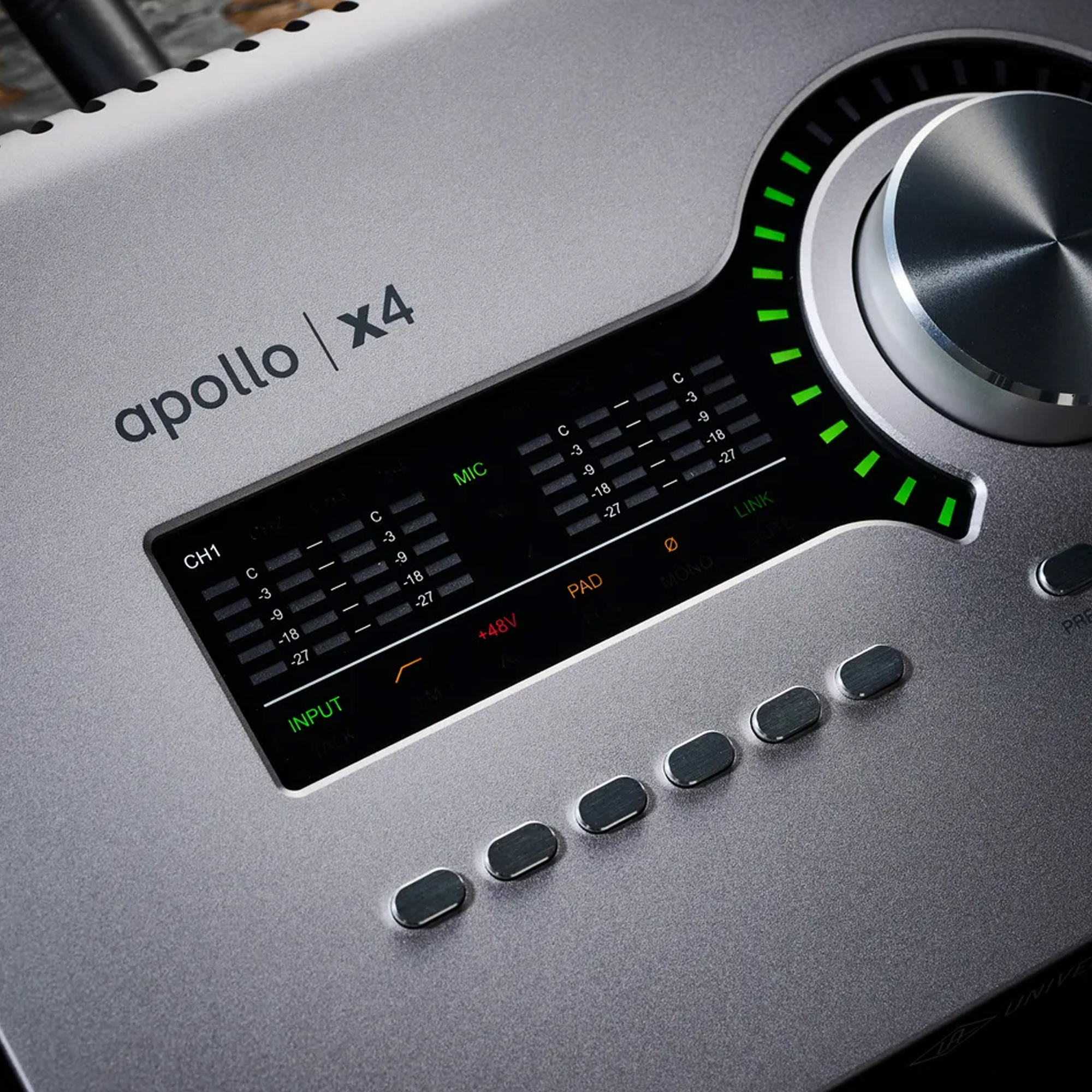Настольные аудио интерфейсы Apollo используются для создания записей каждый день, тысяч хитов и сотней альбомов, удостоенных Грэмми. Чтобы усовершенствовать предыдущее поколение, инженеры UA установили новые элитные конвертеры в Apollo x4, добившись потрясающего динамического диапазона в 129 дБ и -120 дБ THD + N, что обеспечивает Apollo x4 прозрачным и органичным звучанием, которое легко соперничает со специализированными высококачественными конвертерами "Мастеринг" класса.