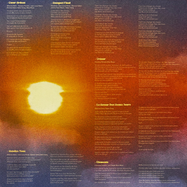Звучание пластинки - это изысканное сочетание попа, соула и элегантной французской эстрады с утонченными аранжировками и атмосферой, пробуждающей чувства и заставляющей слушать каждую дорожку снова и снова. Это музыкальное путешествие, которое сочетает в себе тепло солнечных дней, романтичность вечеров и редкую душевную глубину.