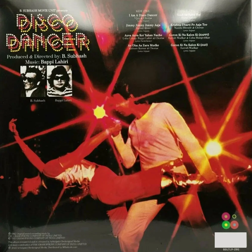 Этот винил не просто альбом, а живая энергия эпохи. Хиты «I Am A Disco Dancer», «Jimmy Jimmy Jimmy Aaja» и «Goron Ki Na Kalon Ki» стали визитной карточкой фильма и исполнителя главной роли, Митхун Чакраборти, чьё имя навсегда связано с образом короля танцпола. Интересный факт: композиция «Jimmy Jimmy Jimmy Aaja» обрела культовый статус в СССР и Китае, став одним из самых узнаваемых зарубежных треков 80-х.