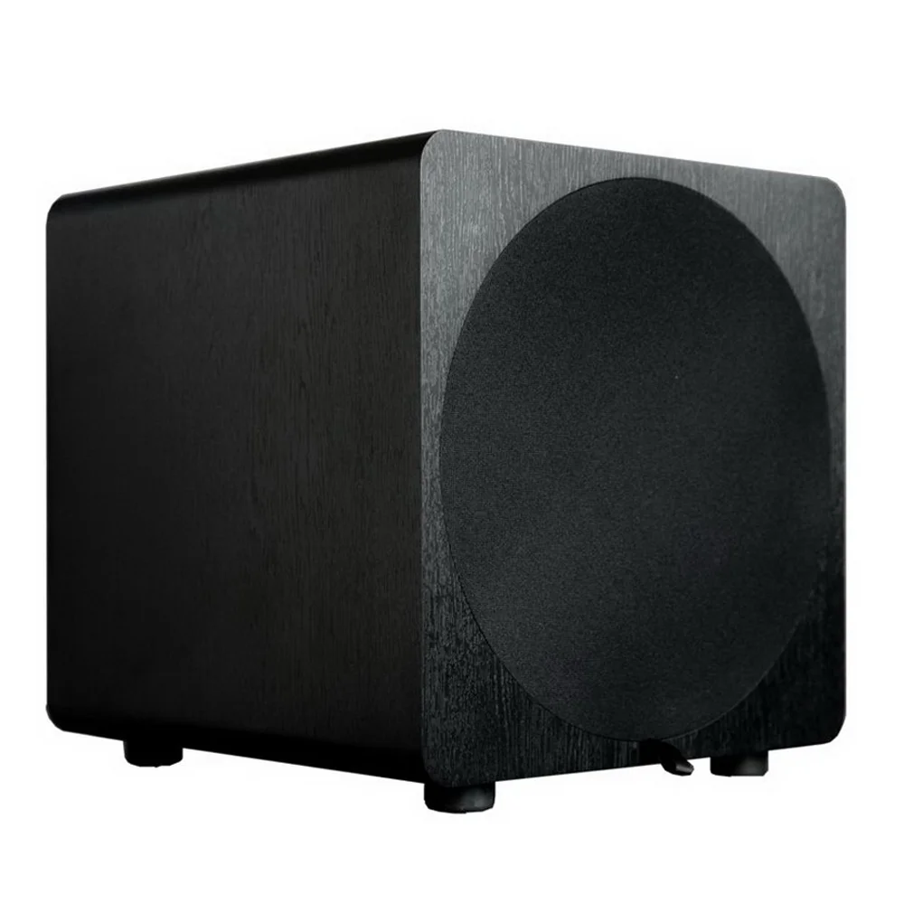 Активный сабвуфер Velodyne DB-10 оборудован 10-дюймовым драйвером (245 мм), а мощность встроенного усилителя составляет 350 Вт (RMS) долговременной и 850 Вт динамической мощности. Хоть Velodyne DB-10 и не младший сабвуфер в серии, его все еще можно причислить к очень компактным моделям: высота ‒ 296 мм, ширина ‒ 316 мм, глубина ‒ 348 мм при весе 11 кг. Корпус сабвуфера, поставленный на низкие резиновые ножки, выполнен из толстых панелей MDF, особенно отличилась лицевая панель, толщина которой составила 52 мм! По своим возможностям сабвуфер полноценно озвучит помещение около 20 кв. метров и будет хорошо сочетаться с небольшой напольной акустикой.