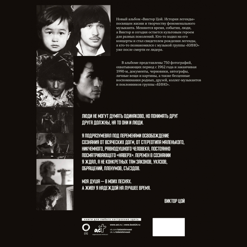 Альбом «История легенды» - это не просто собрание редких архивов, а путешествие сквозь время, через звуки, лица и чувства. Он возвращает нас в ту атмосферу, когда слова «Мы ждем перемен!» звучали как клятва, а гитарные аккорды группы «КИНО» становились голосом целой страны. Это книга для тех, кто хочет понять, почему Виктор Цой - не просто герой своего времени, а вечный символ свободы и правды.