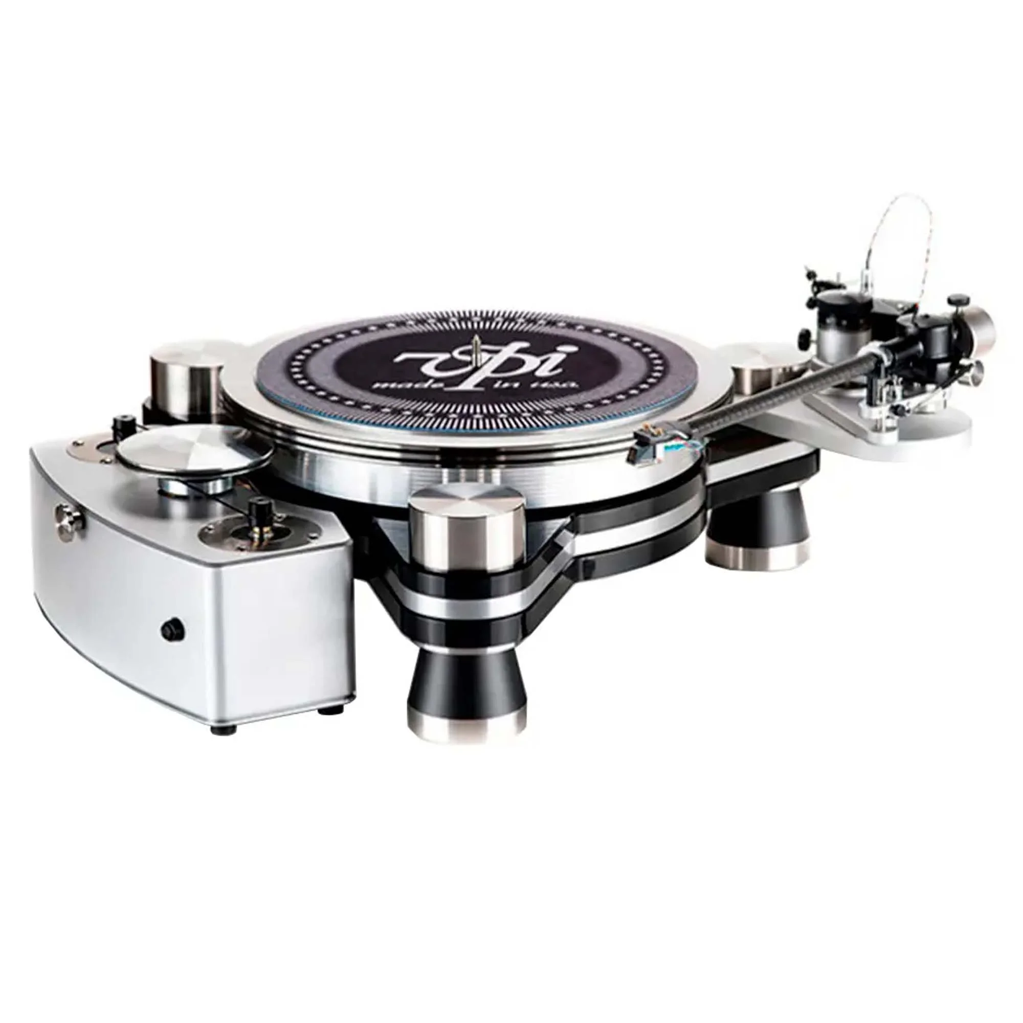 Два 24-полюсных синхронных двигателя переменного тока c частотой вращения 300 об/мин вместе с роликовым приводом находятся в отдельном корпусе из стали и алюминия, что обеспечивает тихую работу и плавную передачу вращения на диск. Инвертированный подшипник состоит из стального закаленного вала с закаленным хромовым шариком наверху, имеющим твердость 60 по шкале Роквелла, а также стакана из фосфорной бронзы с упорным диском из PEEK (PolyEtherEtherKetone). Пассик привода проходит по середине подшипника, что сводит к нулю эффект качелей. Алюминиевый диск на магнитном подвесе весом 11,3 кг изготовлен с допуском +/- 0.02 мм из сплава 6061 и имеет окружность 991 мм.