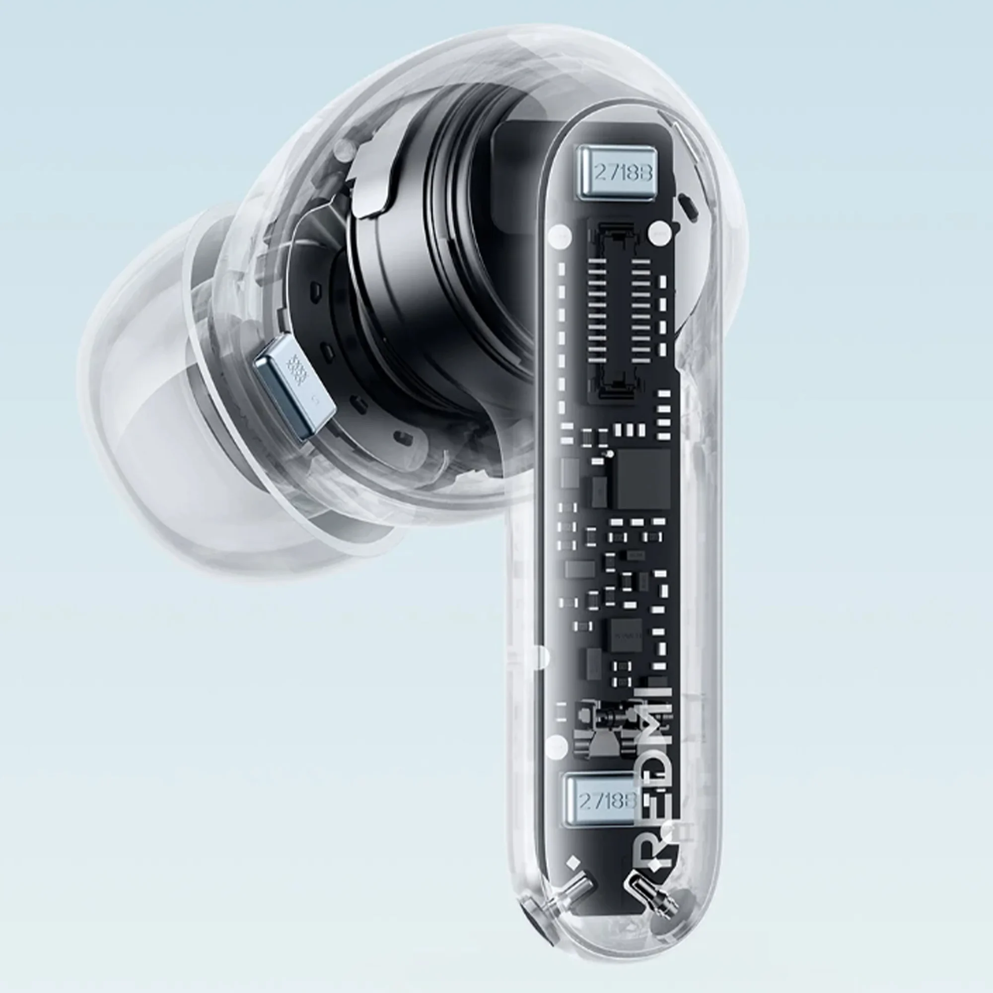 Беспроводные наушники Redmi Buds 8 Pro позиционируются как аудиоустройство с акцентом на инженерную точность звучания. В каждой чаше установлена трёхдрайверная система: 11-мм динамический драйвер с титановым покрытием для насыщенных басов и средних частот, а также два керамических микропьезоэлектрических драйвера по 6.7 мм для высокочастотного диапазона. Независимый частотный кроссовер и два ЦАП обеспечивают раздельную обработку сигналов, формируя детализированную и сбалансированную звуковую сцену.