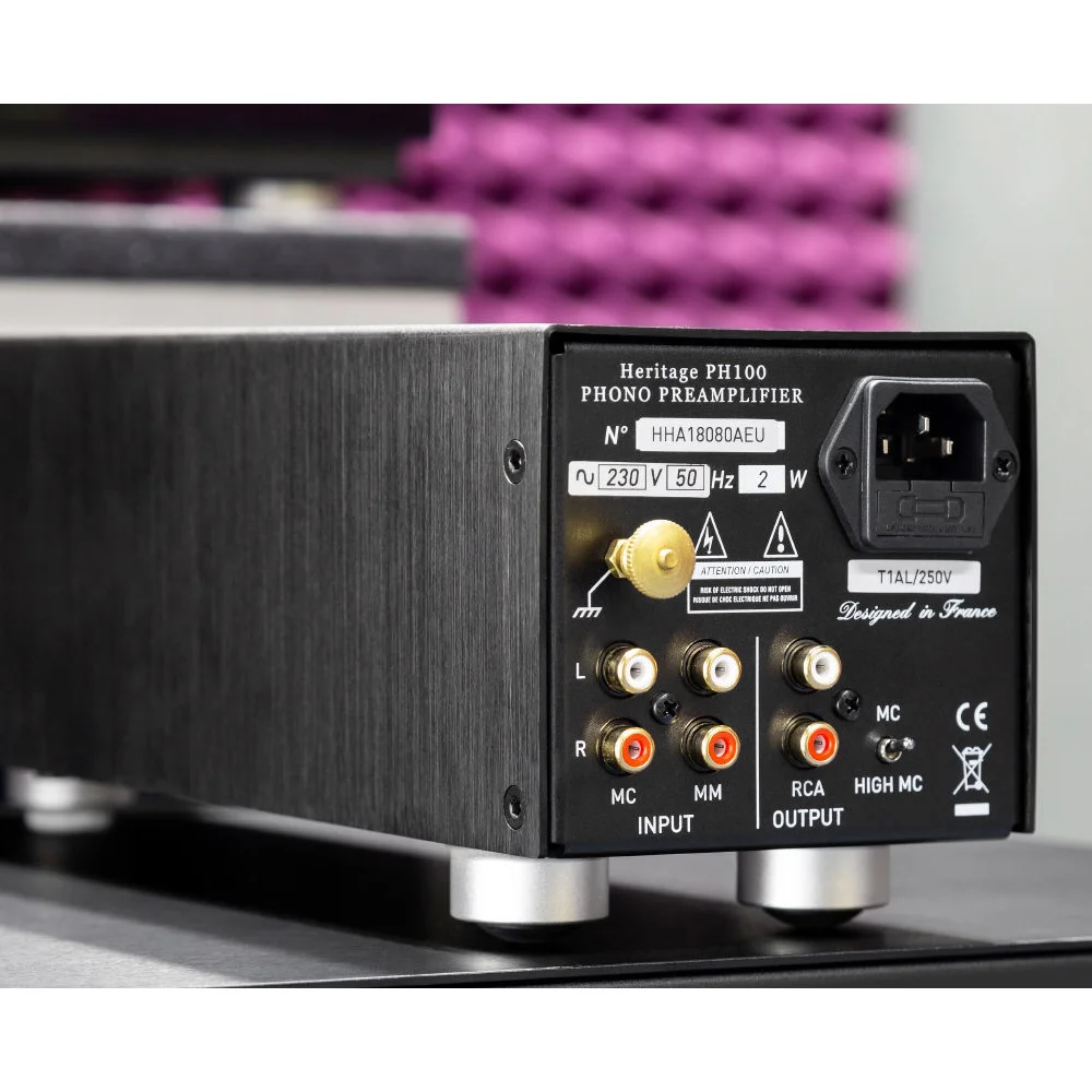 PH100 отличается элегантным и функциональным дизайном и подходит для MM/MC картриджей, обеспечивая высокую производительность. Переключатель управления на передней панели имеет только две опции (MM или MC). Схема была разработана таким образом, что она будет автоматически определяет, какой тип картриджа используется, и настройки будут соответствующим образом скорректированы при условии правильного выбора с помощью тумблера на задней панели.
