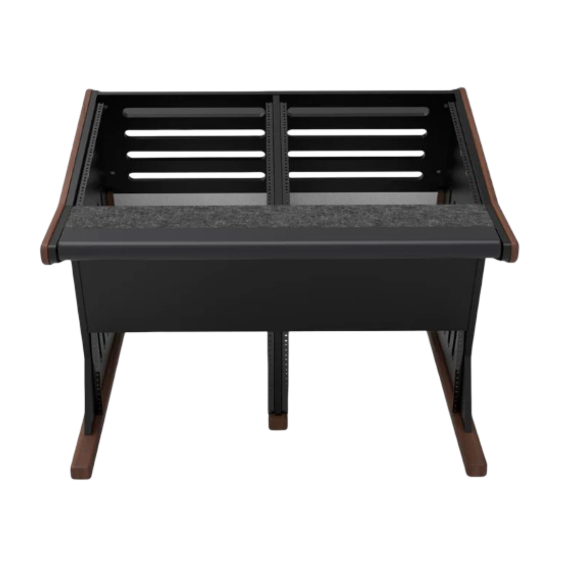 Главная особенность Maestro 24 — это впечатляющее количество места для оборудования в компактном форм-факторе. Он предлагает в общей сложности 36 юнитов рэкового пространства: 24 юнита (два отсека по 12U) расположены на уровне столешницы под небольшим углом для удобного доступа к часто используемым приборам, и еще 12 юнитов (два отсека по 6U) находятся в нижней части, между ножками, идеально подходя для размещения блоков питания, конвертеров и другого менее востребованного оборудования.