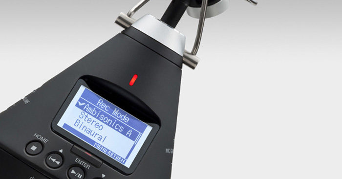 H3-VR оснащен четырехкапсюльным микрофоном, который захватывает 360-градусное аудио качеством до 24-бит/96 кГц. Кроме того, встроенный декодер позволит вам напрямую сохранить звук в формате Ambisonics B без необходимости подключаться к компьютеру.