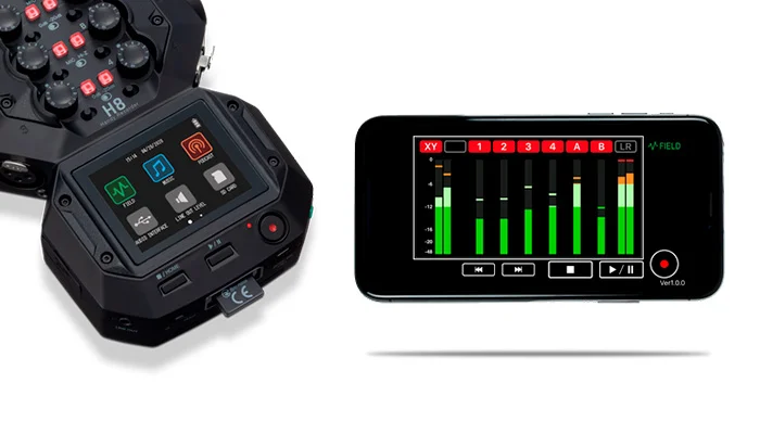 Вы можете осуществлять мониторинг уровней и подавать команды кнопок REC, PLAY и STOP в любом режиме работы H8 непосредственно с вашего iOS-устройства. Просто подключите к H8 беспроводной Bluetooth-адаптер BTA-1 и подключитесь к своему iOS-устройству.